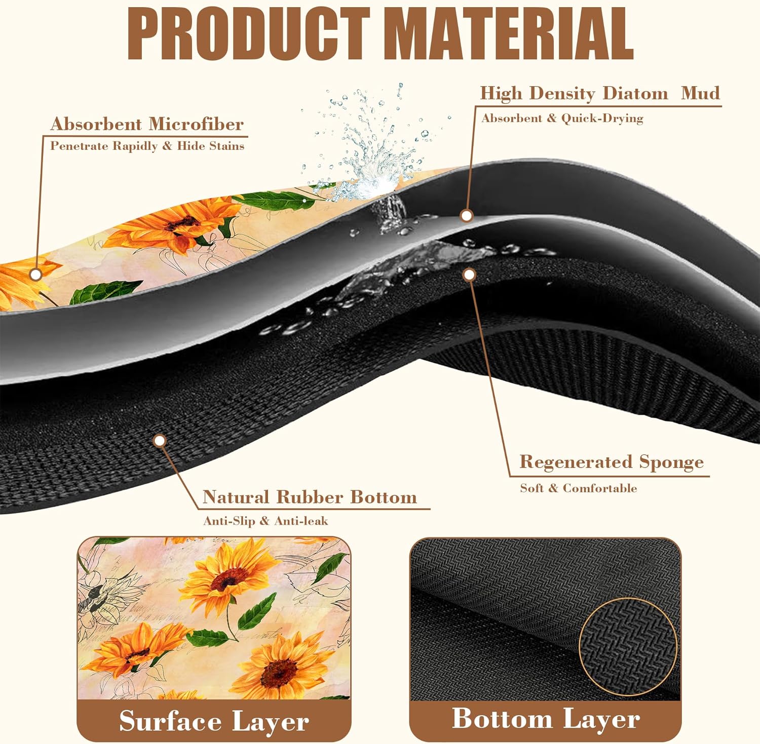 - 【Absorbent & Quick-Drying】The surface of this coffee mat is made of absorbent microfiber and the middle is made of composite sponge, which can absorb up to 4 times its weight in water and has a strong water absorption capacity. The high-density design makes it fast drying and can quickly absorb spilled liquids to keep your counter or desktop dry