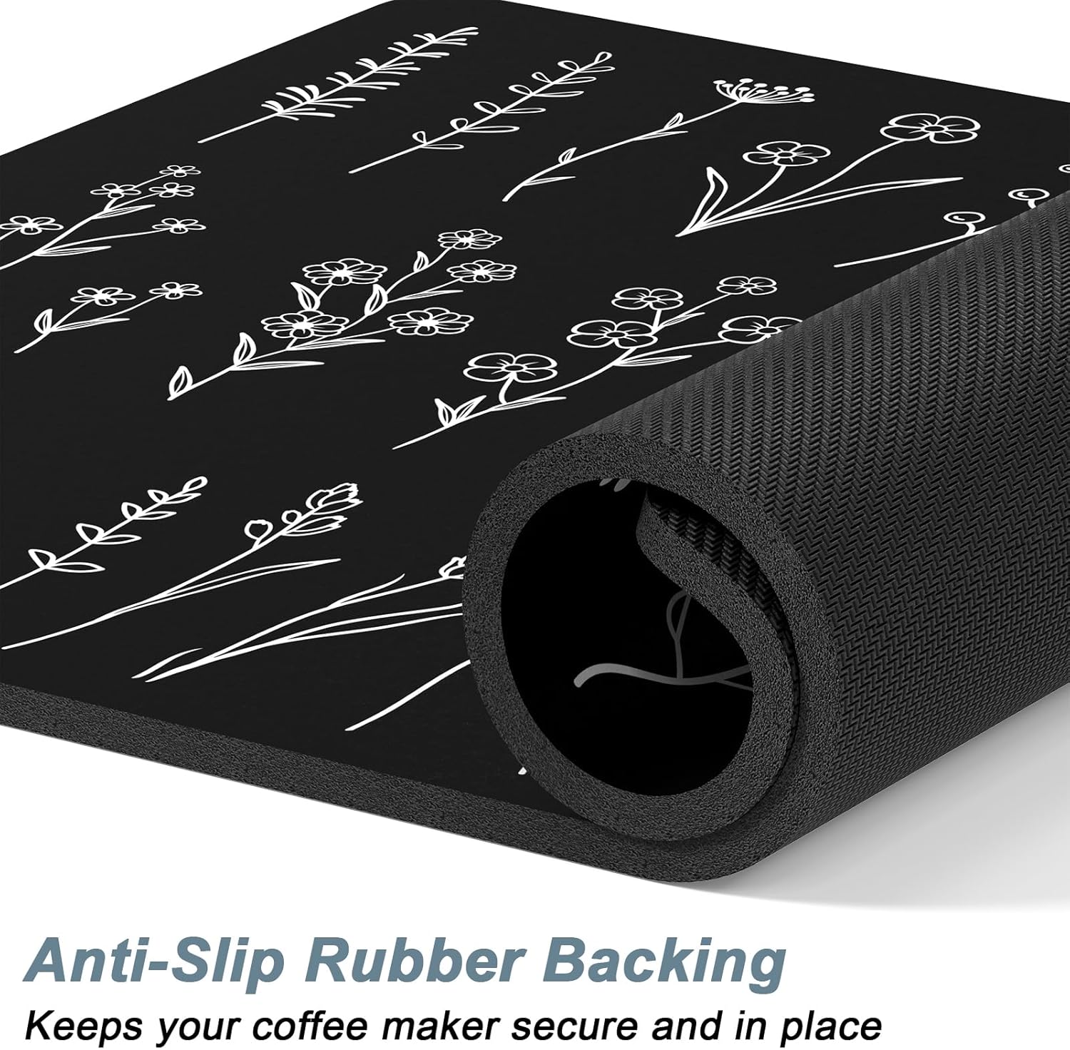 - Super Absorbent and Non-slip: Coffee bar decor mat is crafted from absorbent suede and anti-slip rubber. The surface is soft, heat-proofand and can quickly absorb liquid. The anti-slip rubber backing can firmly grip the floor without unwanted sliding