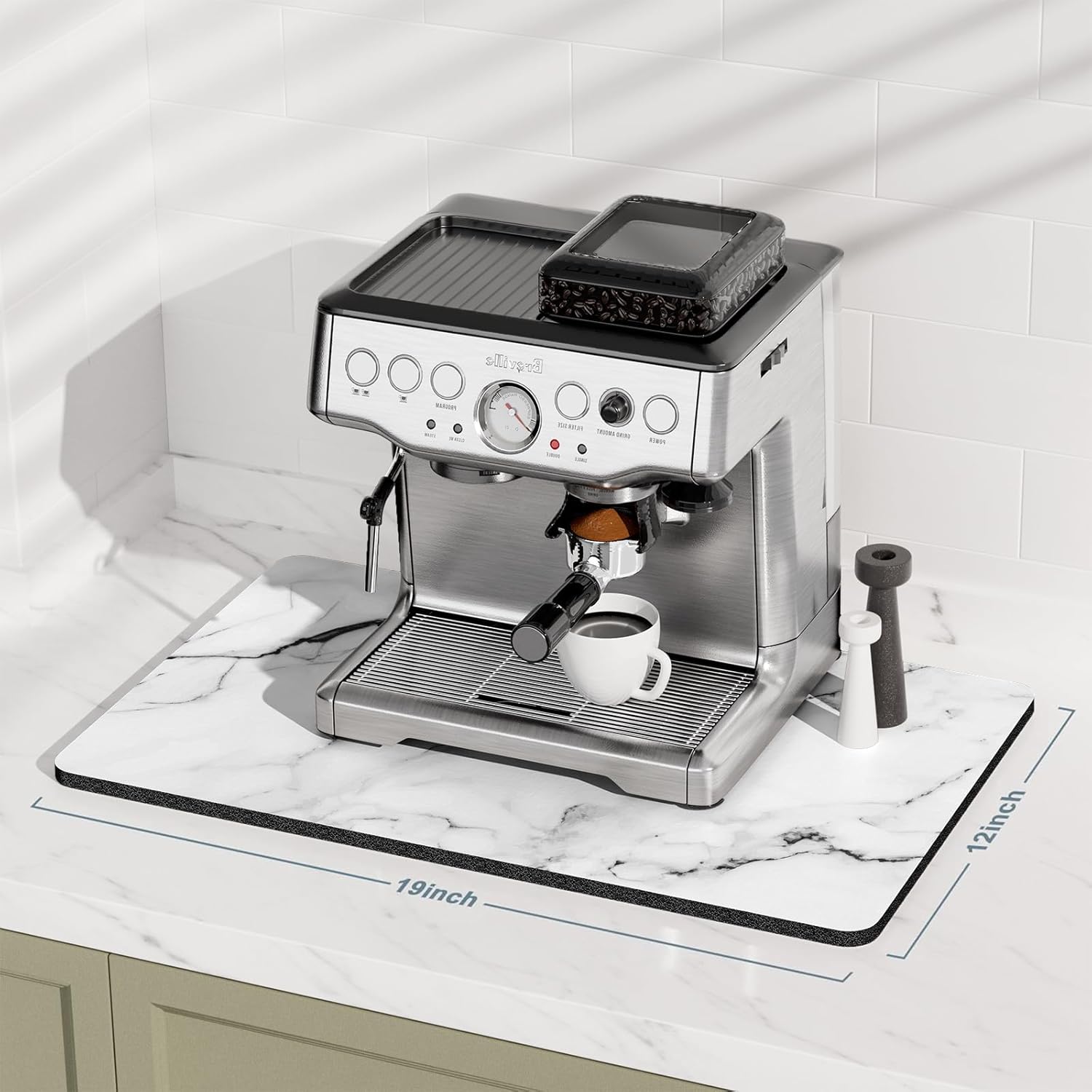 - Versatile Size: Coffee pad for espresso machine accessories measures 12" X 19" fits most counters. Thickened design 0.16 inch thick, which can also be used for any small home household appliances indoors