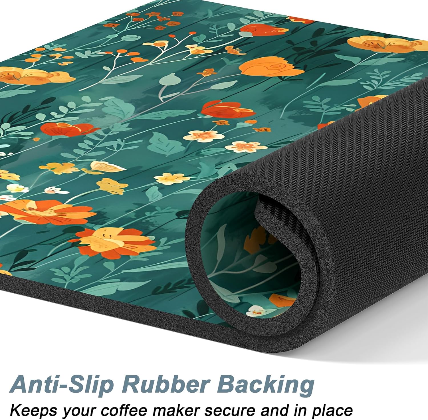 Rnivvi Coffee Mat, 12" x 19" Cute Coffee Bar Mats for Espresso Machine Station Accessories and Organizer, Hide Stain Rubber Backed Absorbent Dish Drying Pad for Kitchen Counter, Gentle Forest Flowers