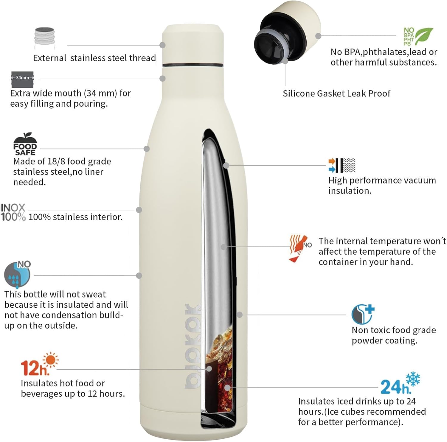 - Keep Drinks Cold & Hot: Adopt double wall vacuum insulation design, keep your drinks ice cold for 24 hours and hot for 12 hours within our highly performed insulated water bottle