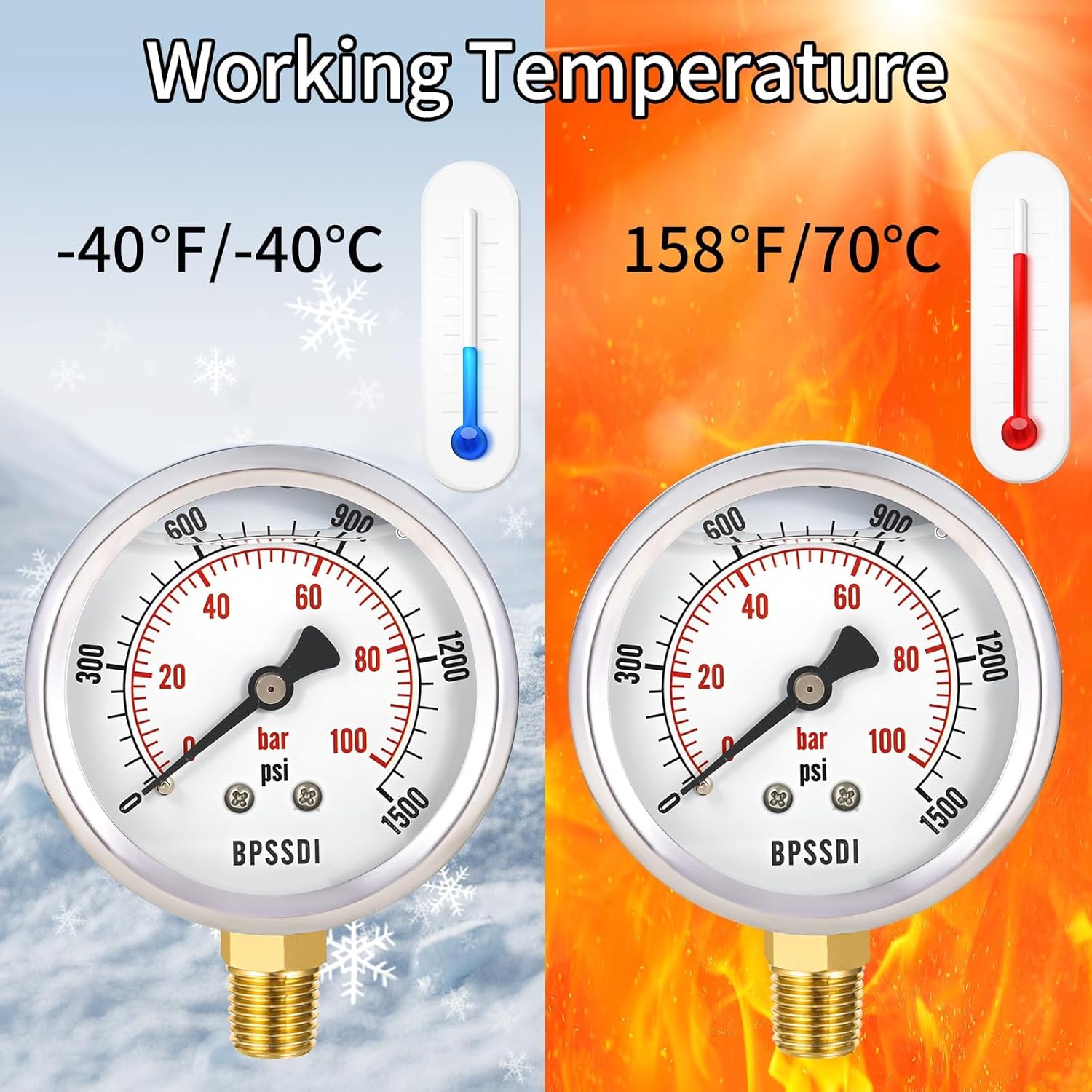 - Weather and Temperature Resistant - The pressure gauge can be used in environments from -40°C to 70°C in a variety of climates.