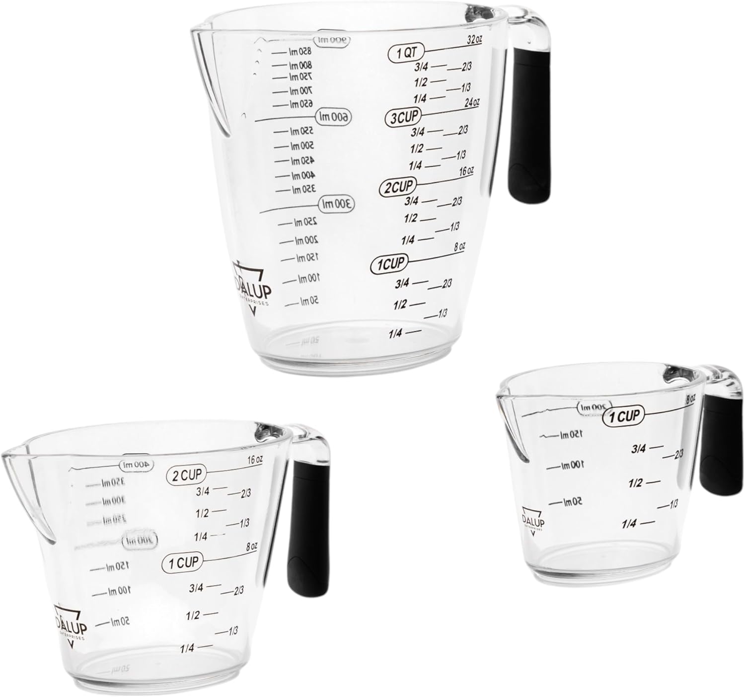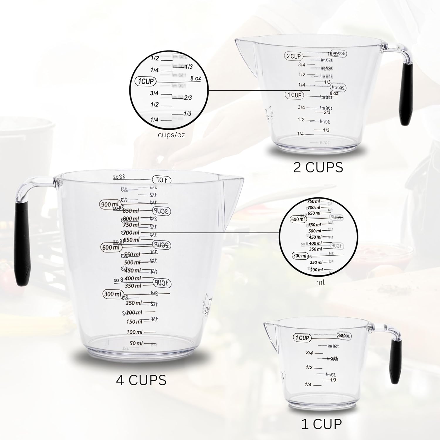 Measuring Cup Set - Clear Plastic Measuring Cups for Liquids Batter Flour Powder - Measuring Cups with Handle & Spout (8/16/32) oz