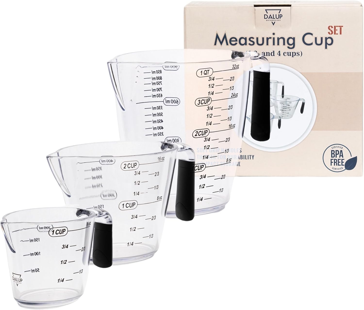 - Kitchen Measuring Cups - A great choice measuring cup to use as liquid measuring cups with the ability to see the liquids, or sugar, flour throguh the clear measuring cups.