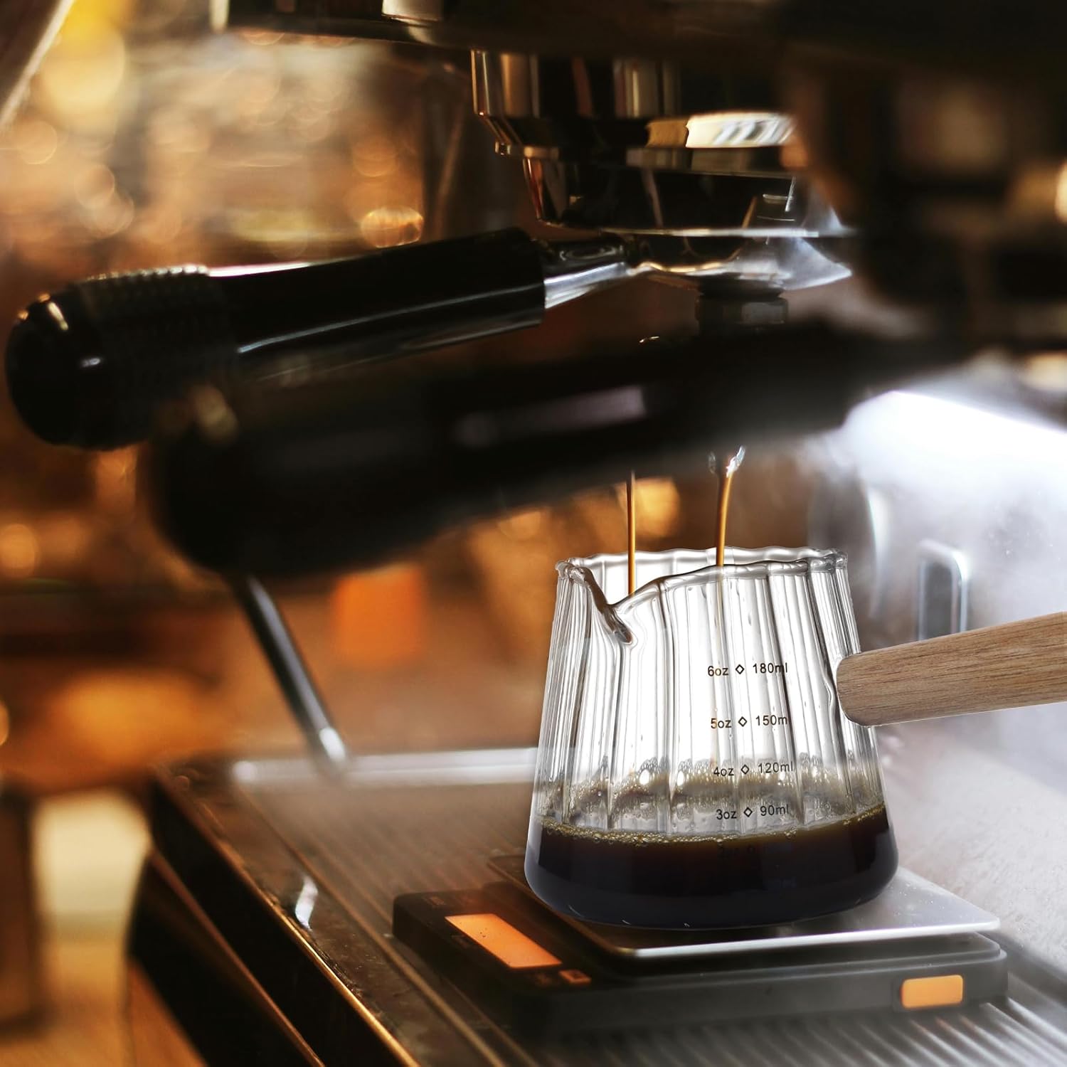 Espresso Measuring Cup 6 Oz, Espresso Glass Cups with Wood Handle, Milk Frothing Cup, Espresso Cup for Coffee, Milk, Tea or Maple Syrup Serving