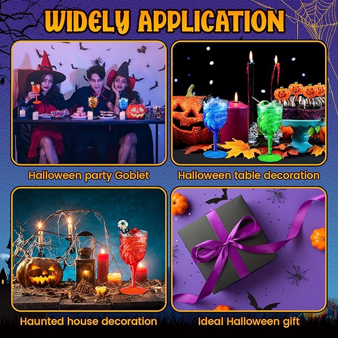 - Wide Applications: these Halloween plastic stemmed glasses can be applied for many occasions, such as Halloween parties, haunted houses, festivals, ceremonies, and various other themed events; You can fill them with a wide variety of items, including wine, champagne, cocktails, juice, soda, candy, and more