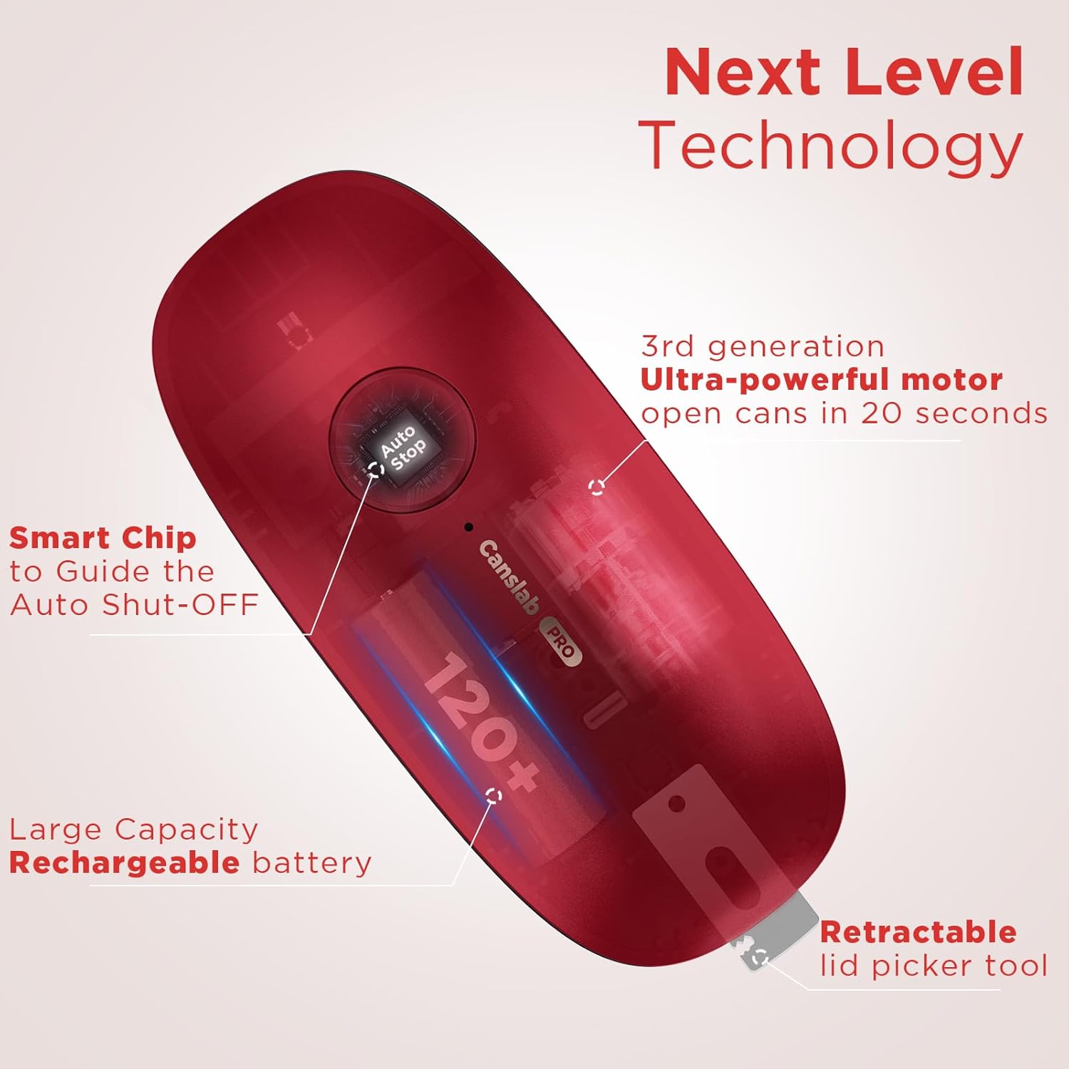 Ultrablade PRO Auto Stop Can Opener - Rechargeable Electric Can Opener for Kitchen for Seniors with Arthritis- One touch Side Cut Can Opener, Smooth Edge, Handfree, Portable Small Size, Red