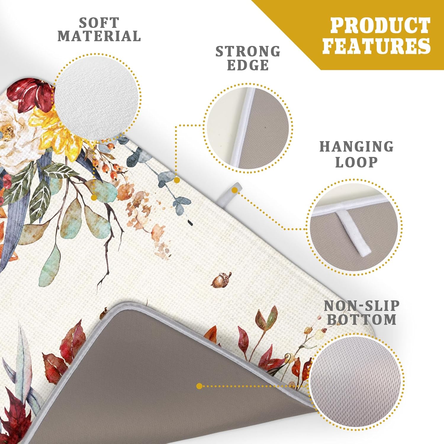 - ❀ 【SPECS & WATERPROOF BACKING】 Made of absorbent fabric, this 3-ply polyester provides a soft cushion. 24" X18", fitting most counters snugly while providing a smart and sharp look, a gorgeous decoration for kitchen. Moreover, the waterproof backing stops liquids from soaking through, damaging or staining the surface below and allows moisture to evaporate quickly at the same time.