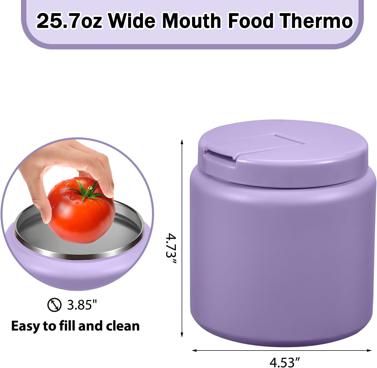 26oz Kids Thermos for Hot Food, Insulated Vacuum Food Jar with Buckle Lid, Stainless Steel Wide Mouth Leak Proof Insulated Lunch Container for School Picnic Travel, Purple