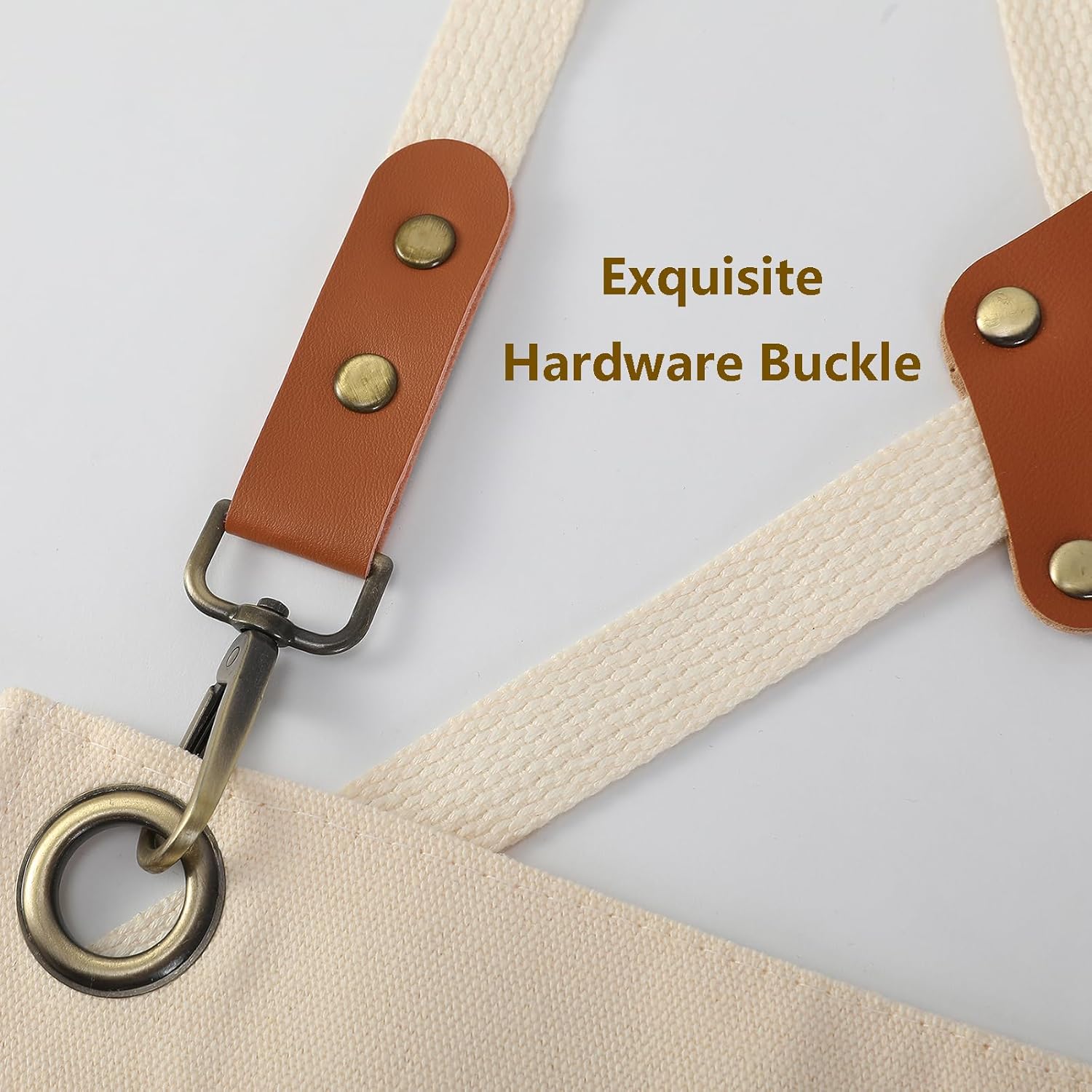 - Comfortable to wear: This kitchen apron has a cross back design that does not pinch your neck. This chef apron is made of high-quality brass metal fasteners and faux leather, and there are leather buckles on the back to fix the two detachable shoulder straps, which is more convenient to put on and take off. The apron is fully handmade and is comfortable to wear for a long time.