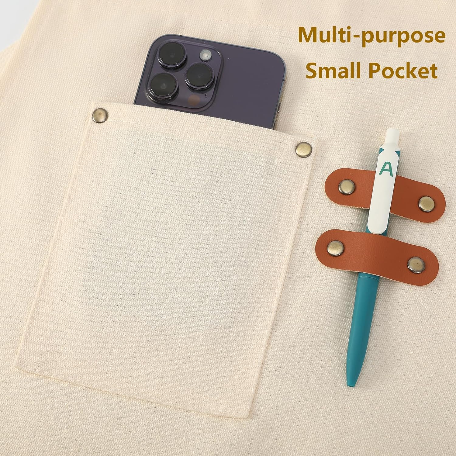 - High-quality canvas material: Our canvas aprons are made of medium-thick, 12-ounce 100% cotton canvas, ensuring durability and easy cleaning. With advanced waterproof technology, water can flow on the apron without getting it wet, while repelling water and maintaining good breathability.