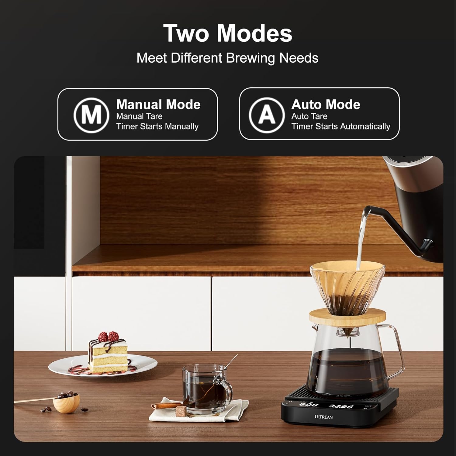 - 6 Units & Dual Timing Modes: This espresso scale offers six measurement units (g/ml/oz/lb/lb:oz/fl'oz) with easy switching. It has two timing modes, automatic and manual, allowing precise control over each brewing step and ensuring consistent, perfect results every time