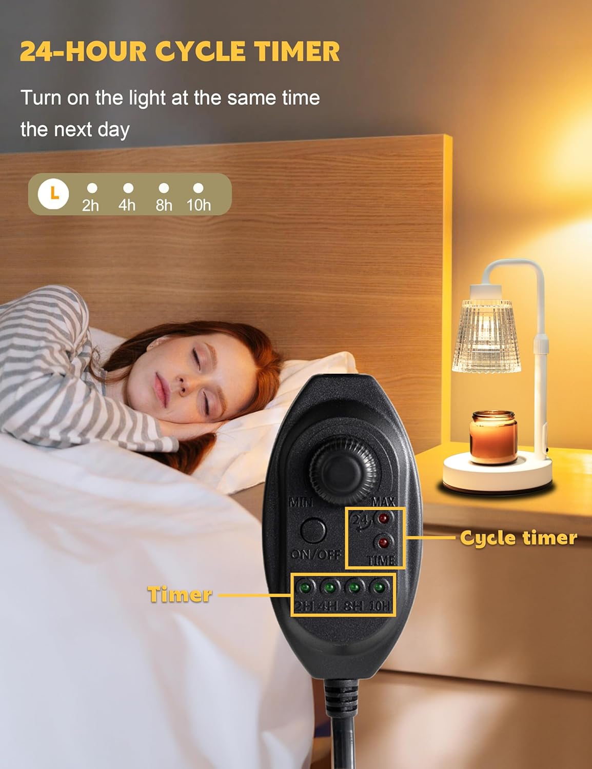- Fully Dimmable and 12-Hour Timing Function: Enjoy complete control over the ambiance with our dimmable knob, offering unrestricted dimming for personalized melting speeds. Additionally, our Candle+Warmer+Lamp boasts a convenient timer function, ensuring a perfect atmosphere tailored to your preferences, facilitating uninterrupted sweet dreams.