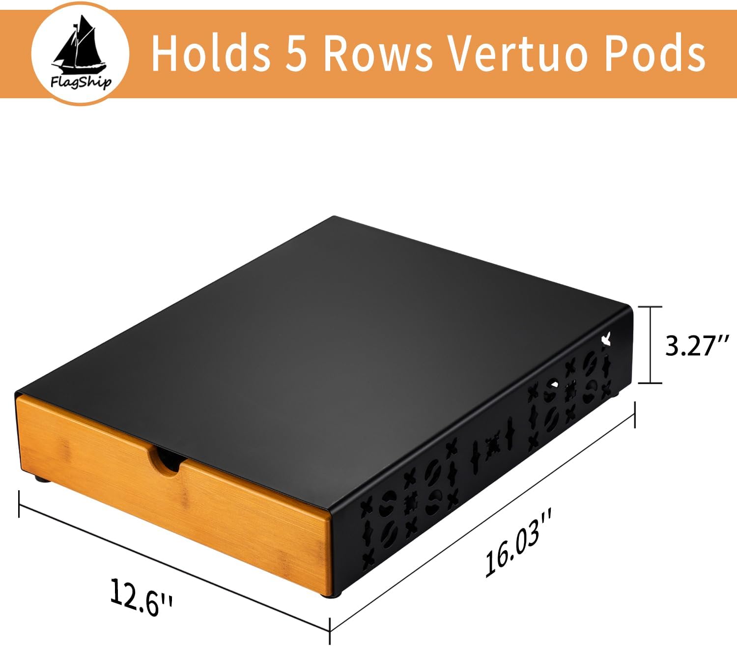 - 【Ultra-Large Capacity】 Universal design drawer,Flagship's latest Pod drawer easily fits all sizes of Vertuo capsules.Maximum Capacity: (40 pods 12/18 oz) or (55 pods 7.8/5/2.7oz) or (80 pods 1.35oz)