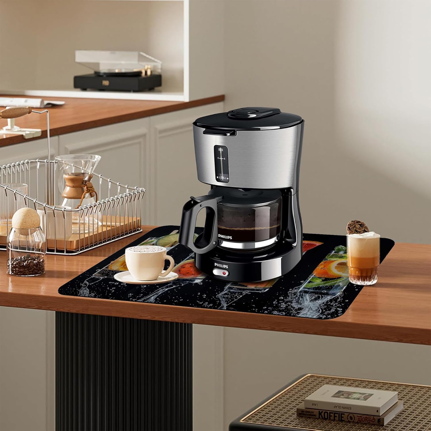 Dish Drying Mat Glasses Filled with Various Fruits Kitchen Mat 16"x24" Bsorbent Coffee Maker Mat for Dishes,Utensils Coffee Maker Pots and Pans Easy Clean Dish Slip Resistant Pad