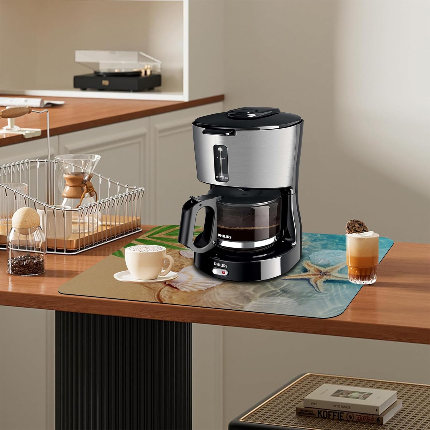 Dish Drying Mat Summer Beach Starfish Seashell Kitchen Mat 16"x24" Bsorbent Coffee Maker Mat for Dishes,Utensils Coffee Maker Pots and Pans Easy Clean Dish Slip Resistant Pad