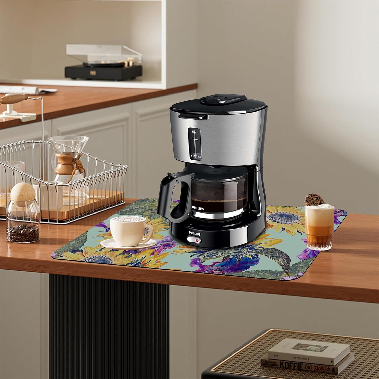 Dish Drying Mat Watercolor Sunflowers Irisflowers Floral Kitchen Mat 16"x24" Bsorbent Coffee Maker Mat for Dishes,Utensils Coffee Maker Pots and Pans Easy Clean Dish Slip Resistant Pad