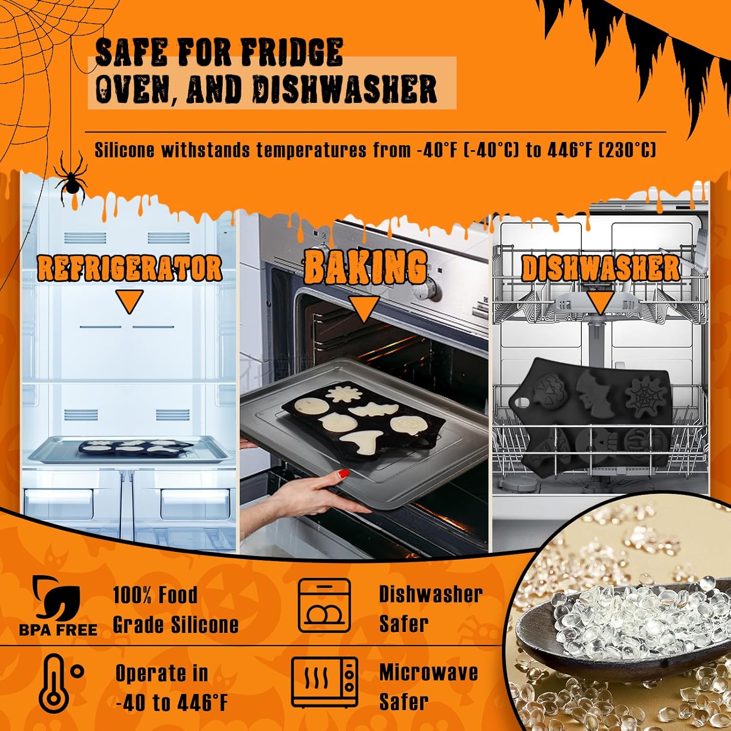 - Heat and Cold Resistant: These molds can handle it all, from baking spooky treats in the oven to freezing chilling ice cubes. With a temperature range from -40°F (-40°C) to 446°F (230°C), they’re perfect for all your Halloween creations
