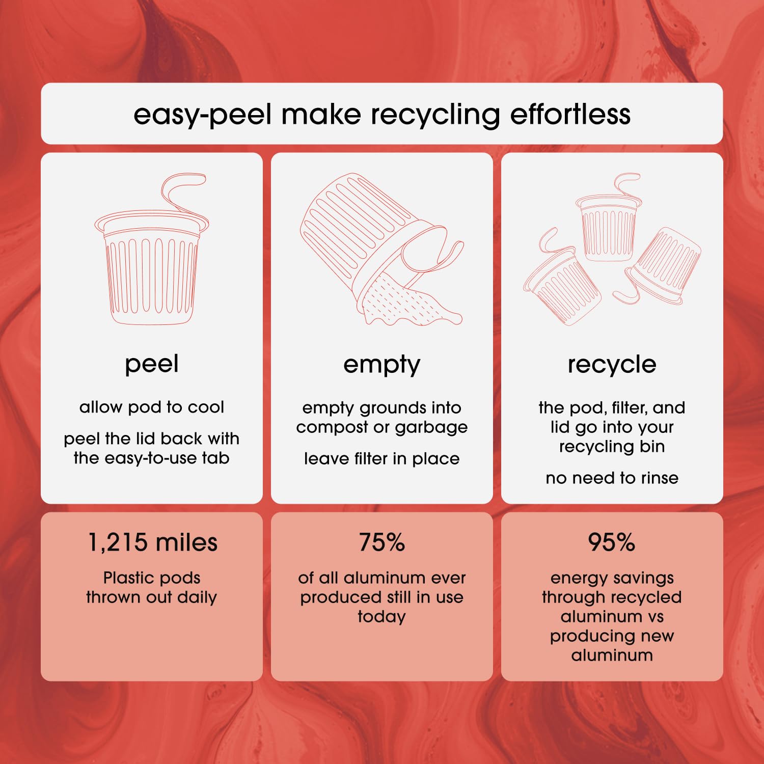 - Flavor Ridges: Each aluminum coffee k cup is designed with Flavor Ridges that provide more surface area for Cambio Coffee grounds, promoting more thorough water interaction during brewing. This optimized coffee pod design extracts 34% more flavor compared to standard pods.