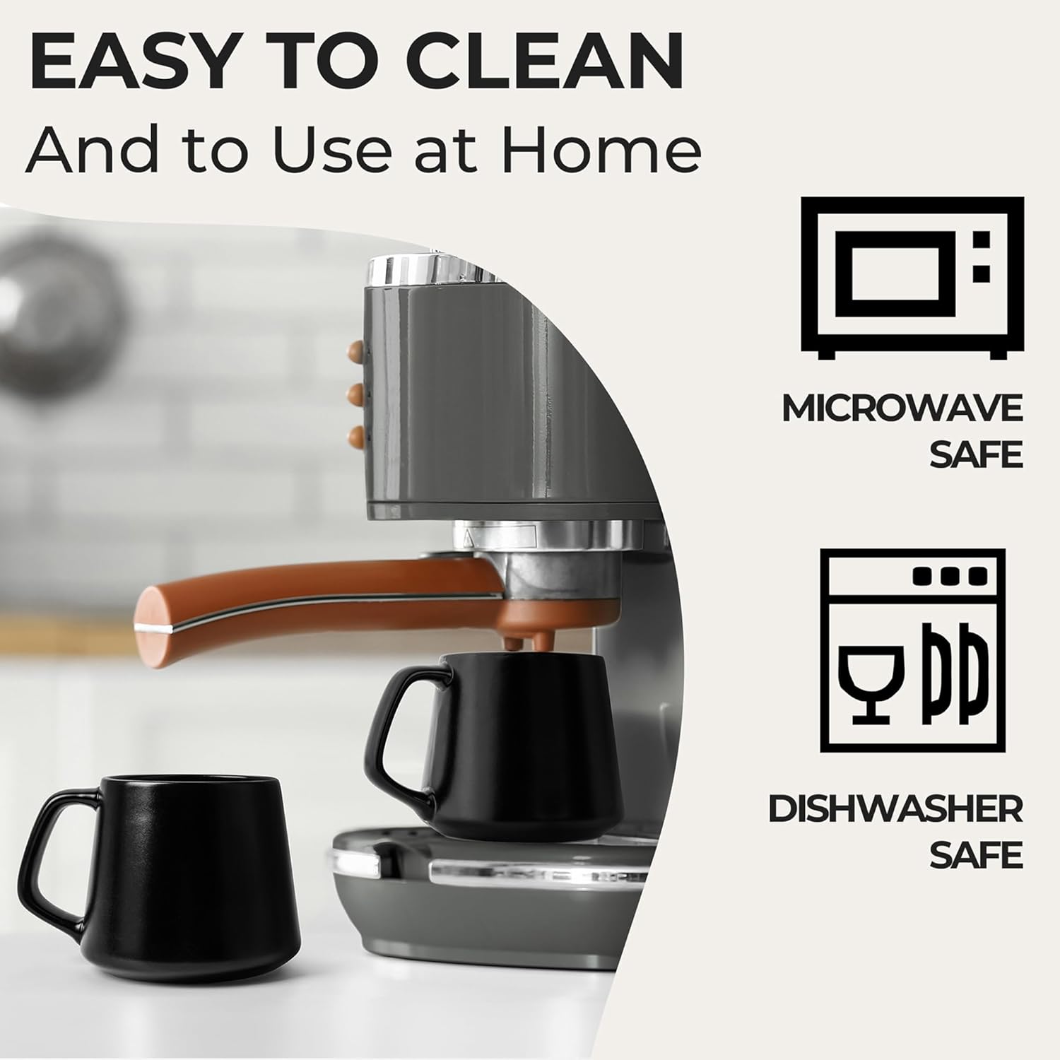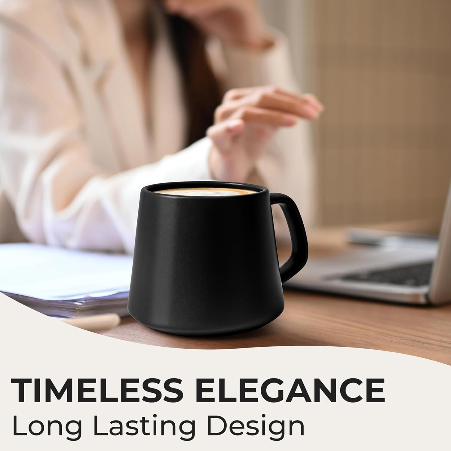 MIAMIO - Coffee Mugs Set of 4 / Large Ceramic Coffee Cups (14 oz) - Mug for Cappuccino, Tea, Espresso - Microwave and Dishwasher Safe - Luxe Collection (Black Series)