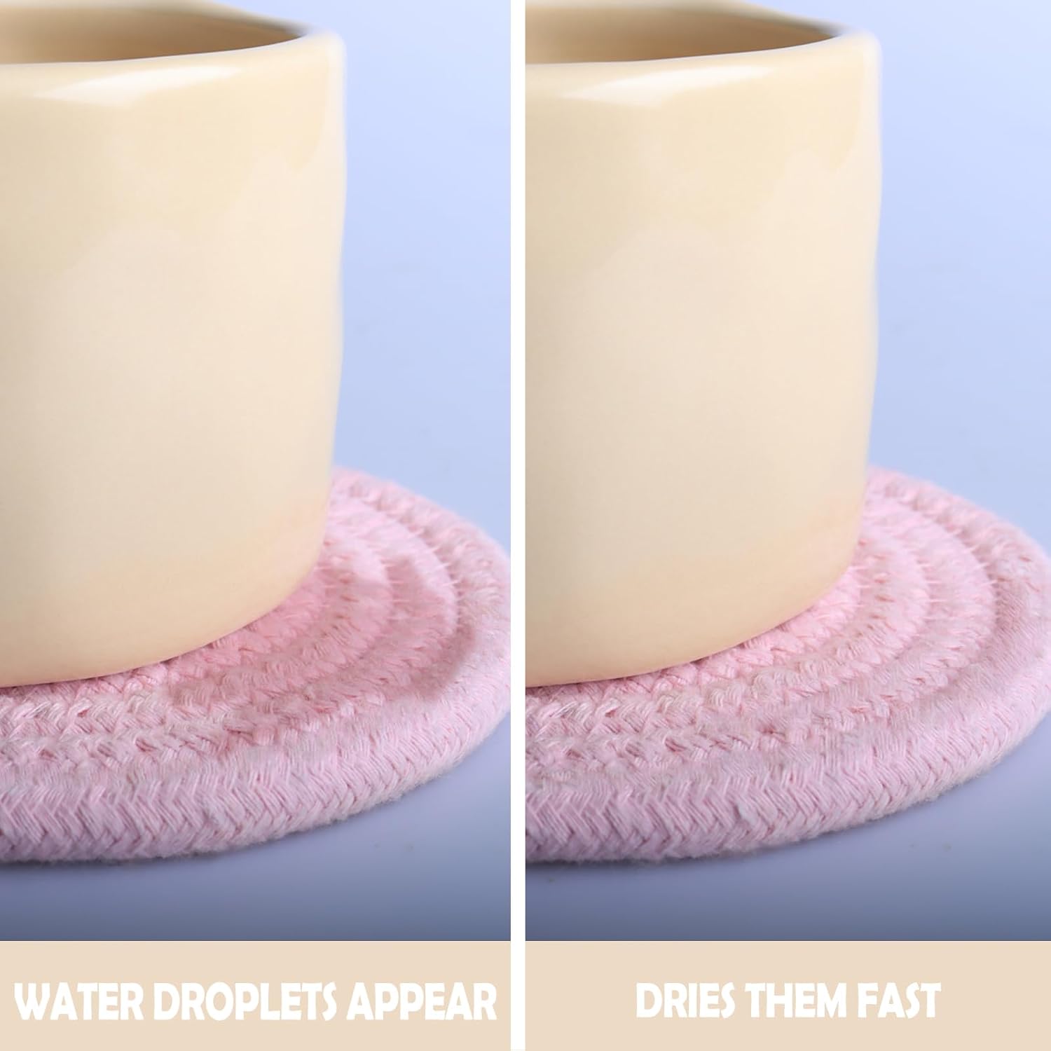 - 【Soft Yet Durable Cotton】 Crafted from thick, handwoven cotton, these absorbent coasters keep surfaces dry while preventing heat damage. A gentle yet sturdy construction ensures long-lasting daily use with no scratching or slipping.