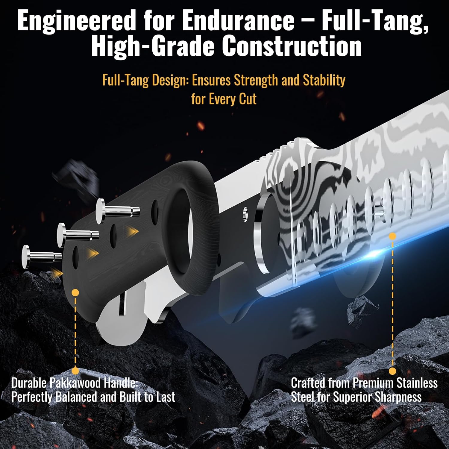 - Balanced Full-Tang Construction – Built with a durable full-tang structure, this knife offers exceptional strength, balance, and longevity, ensuring comfortable handling and precise cutting for years to come.