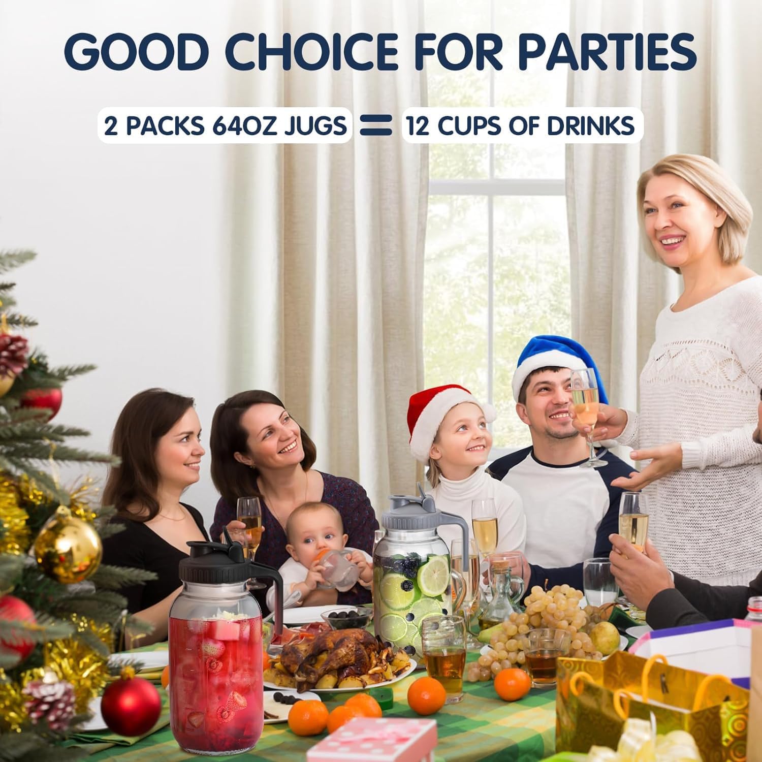 - LARGE CAPACITY, TWO PACKS: Both jugs have a capacity of 64 OZ, which is very suitable for family parties, outdoor camping, large families and other needs. It can not only meet the different tastes of many people, but also provide sufficient capacity.