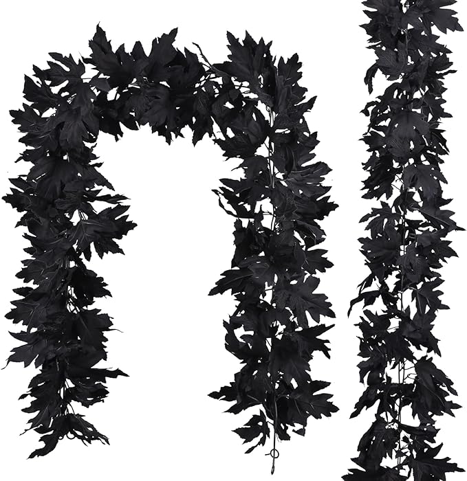 Lvydec 2 Pack Black Halloween Fall Maple Garland - 5.9ft/Piece Artificial Hanging Fall Leave Vines Garland Autumn Decor for Thanksgiving Home Wedding Party