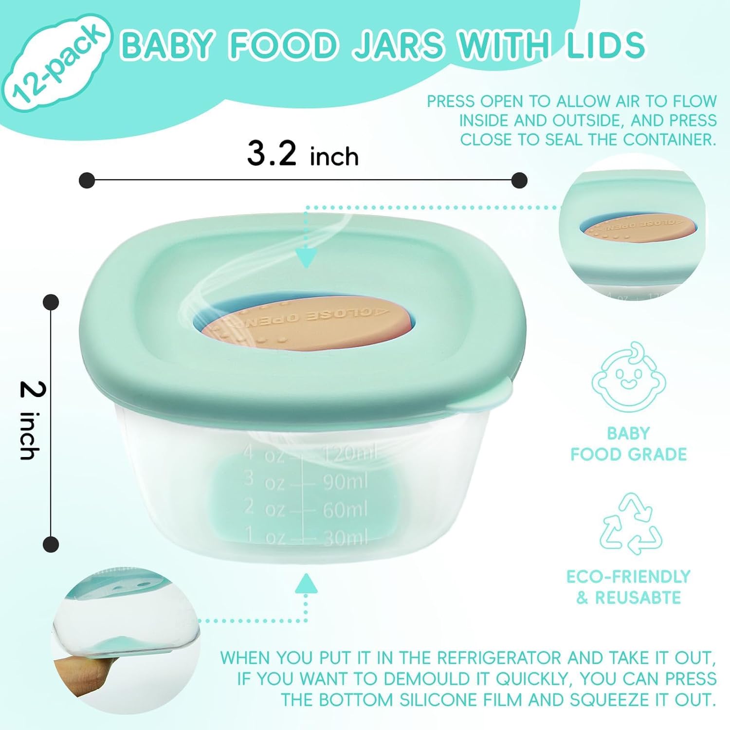 Leak-Proof Baby Food Storage Containers 12-Pack - 4oz BPA-Free Freezer & Microwave Safe Food Jars with Airtight Lids for Infants, Travel, Nurseries