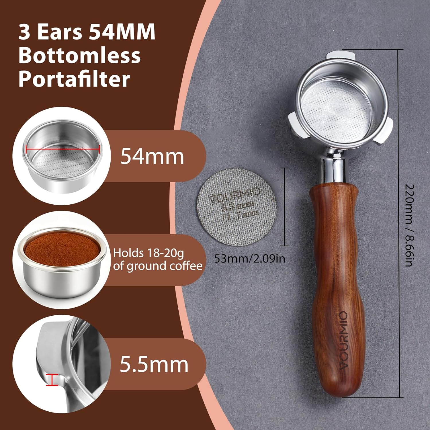 - FILTER BASKET & PUCK SCREEN: Comes with a 18-20g capacity filter basket and a 53.3mm puck screen. The filter basket can be swapped to other brands 54mm baskets, while the puck screen reduces splashing and prevents coffee grounds from contacting the group head, keeping it clean