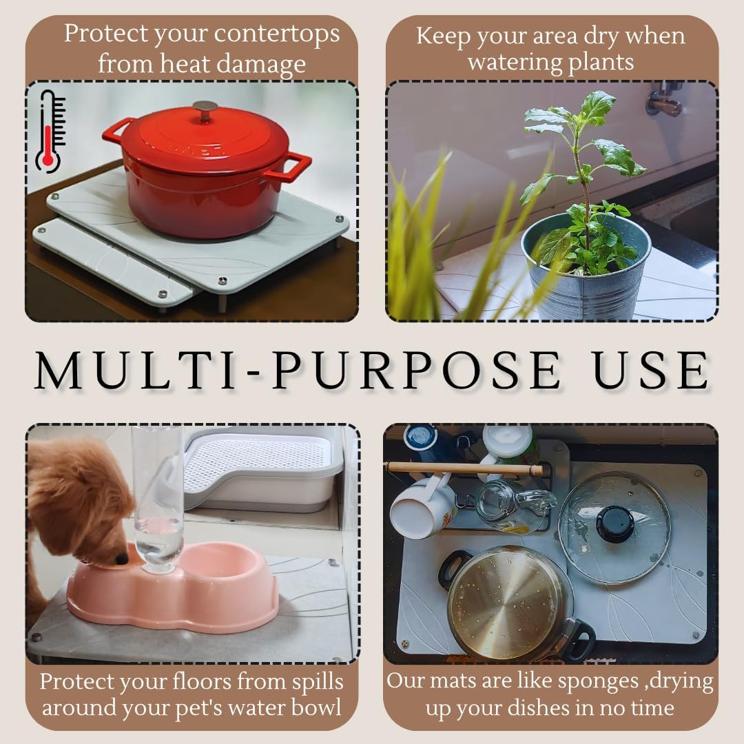 - ✅ Heat Resistant & Versatile Use for Every Home Area : Beyond dish drying—use it as a heat-resistant trivet, pet feeding station mat, plant saucer, or even a decorative slab for candles and decor. A multi-tasking solution for stylish, organized spaces.