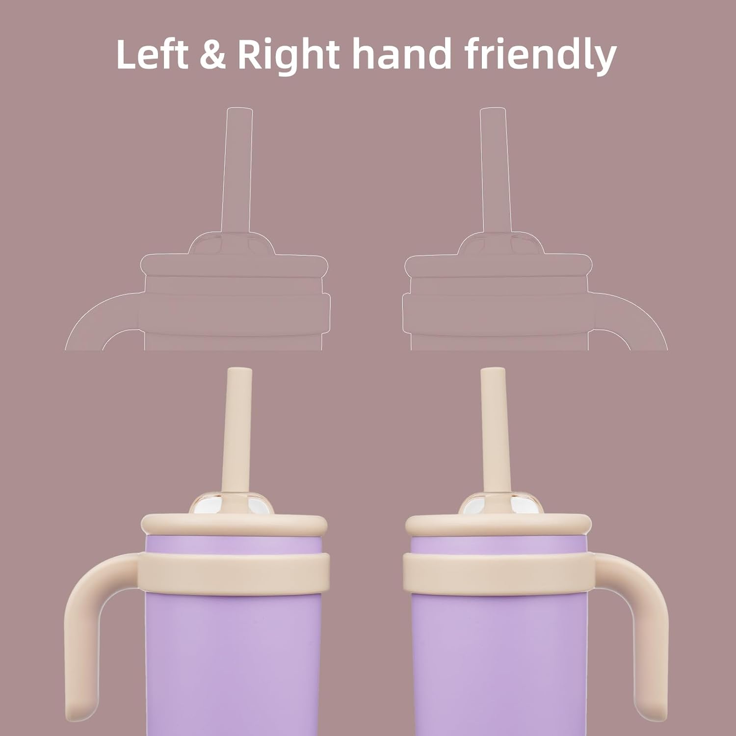 14 oz Tumbler with Side Handle, Insulated Water Bottle with Straw and 2 in 1 Lid, Stainless Steel Cup Travel Coffee Mug for Sports Office Gym,Purple