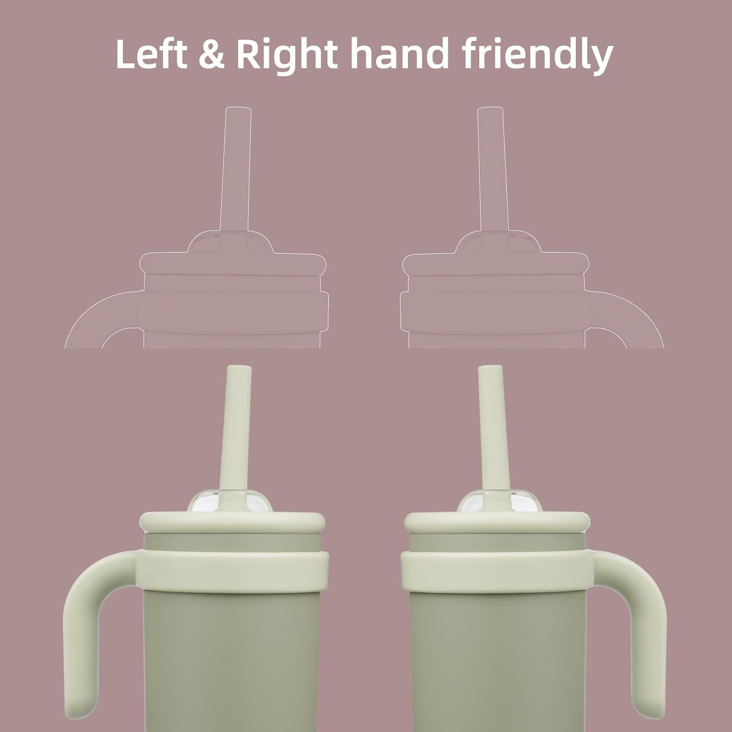 18 oz Tumbler with Side Handle, Insulated Water Bottle with Straw and 2 in 1 Lid, Stainless Steel Cup Travel Coffee Mug for Sports Office Gym,Camp Green