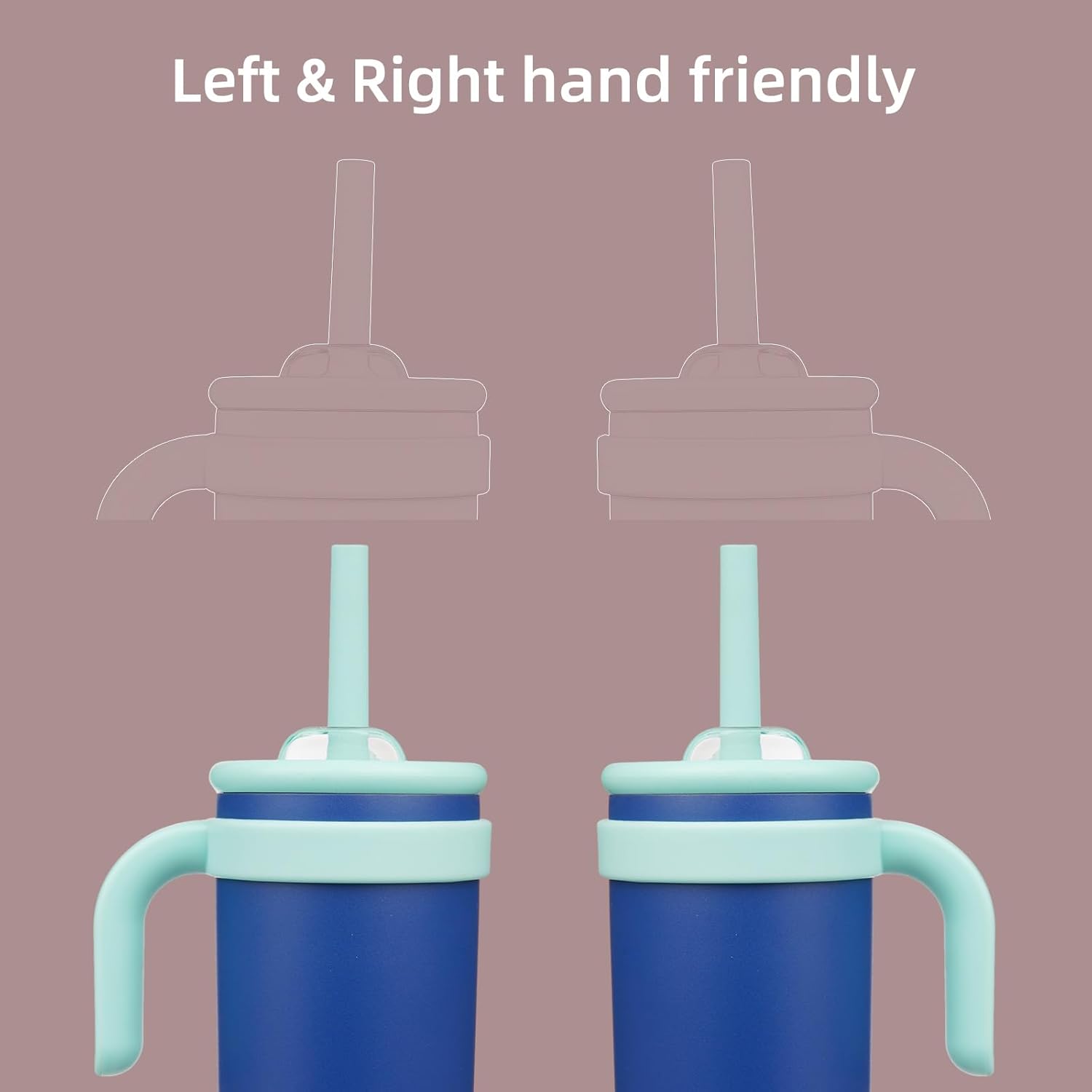 18 oz Tumbler with Side Handle, Insulated Water Bottle with Straw and 2 in 1 Lid, Stainless Steel Cup Travel Coffee Mug for Sports Office Gym,Dark Blue
