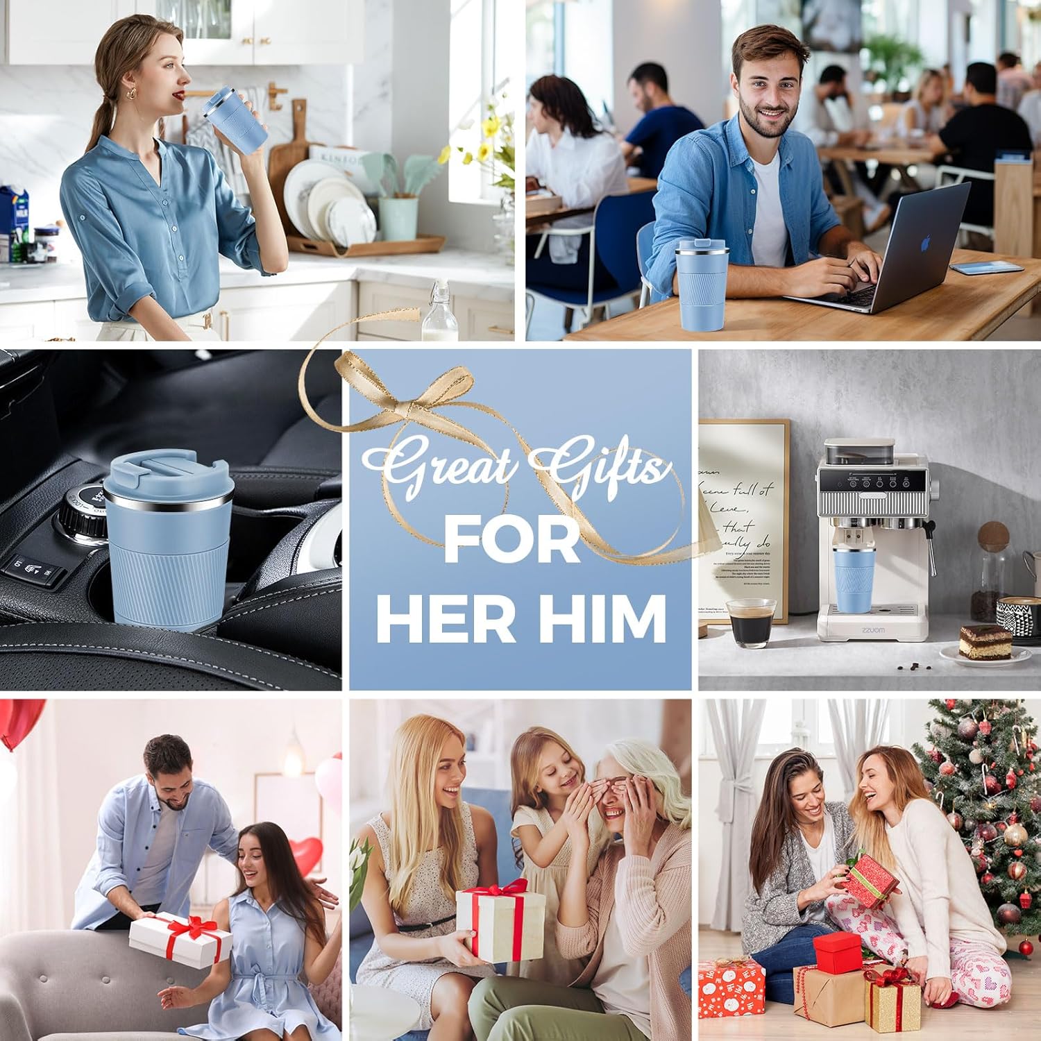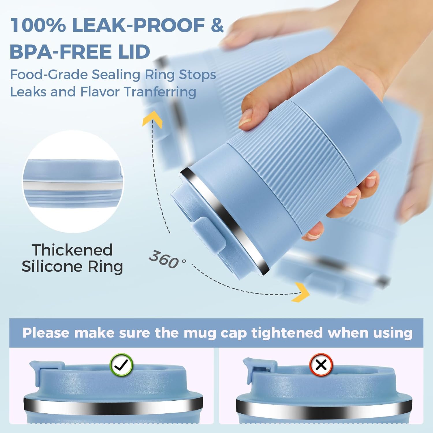 - 【Double Wall Insulation Technology】Volhoply Travel Coffee mugs are made with double-wall vacuum insulation technology,which can keep your drinks warm for more than 6 hours and cold for more than 12 hours,both indoors and outdoors.You can enjoy your favorite drinks for a long time,keeping every sip fresh until the last drop!