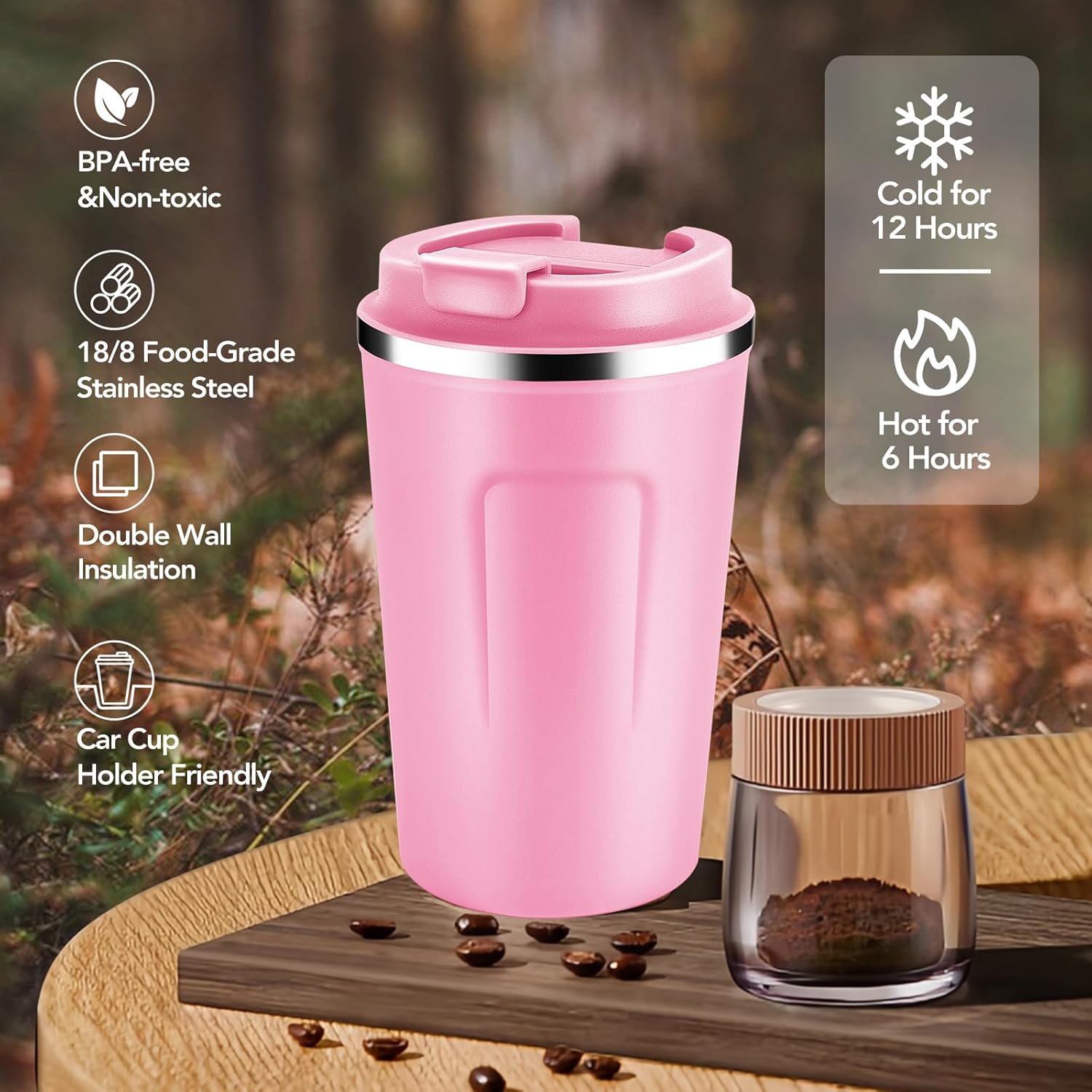 - 【Double Wall Vacuum Insulation】Our cups use double wall vacuum insulation technology to keep your favorite drinks at their ideal temperature for longer,keeping hot drinks warm for 6 hours and cold drinks cold for 12 hours.Allowing you to enjoy the best tasting coffee at any time of the day