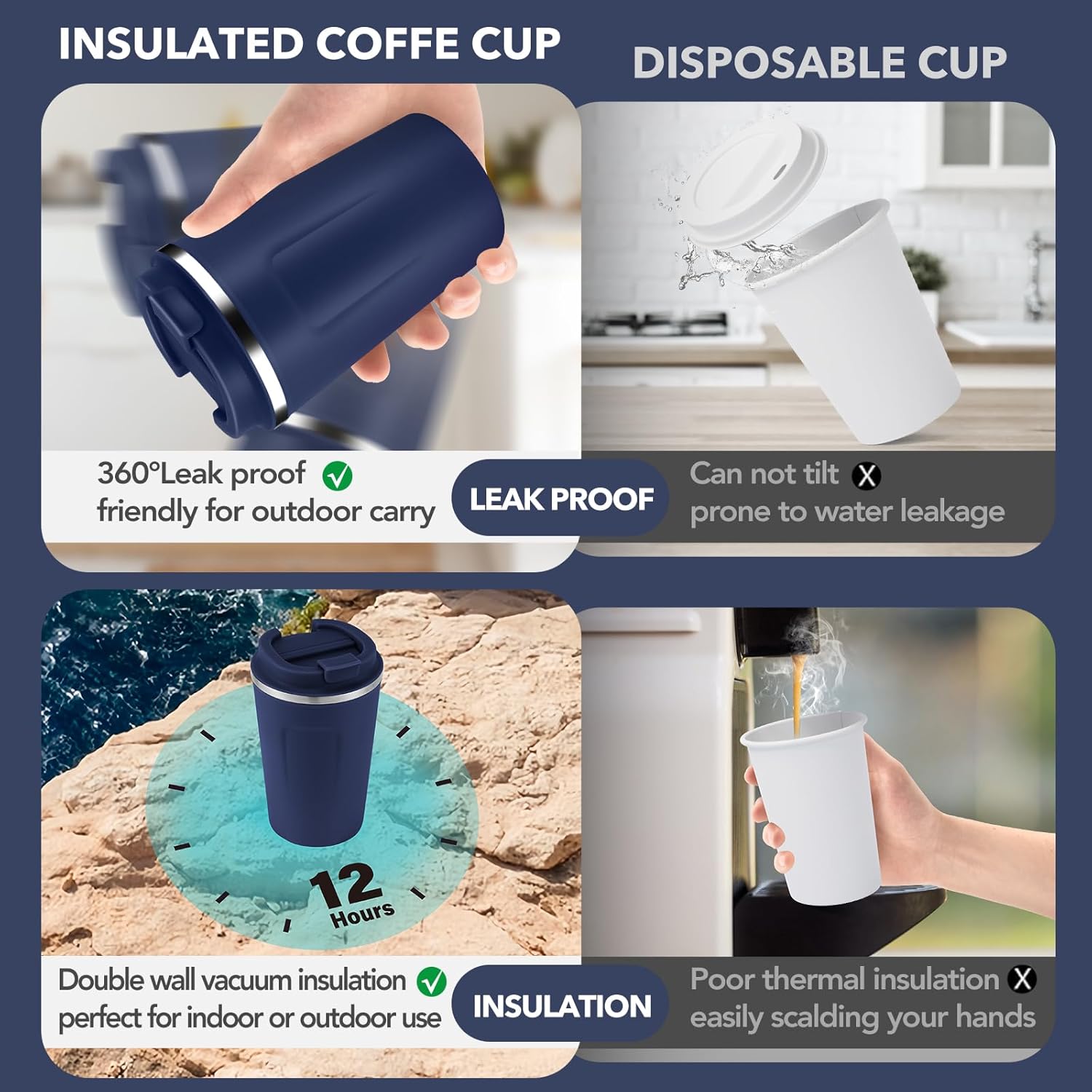 - 【Double Wall Vacuum Insulation】Our cups use double wall vacuum insulation technology to keep your favorite drinks at their ideal temperature for longer,keeping hot drinks warm for 6 hours and cold drinks cold for 12 hours.Allowing you to enjoy the best tasting coffee at any time of the day