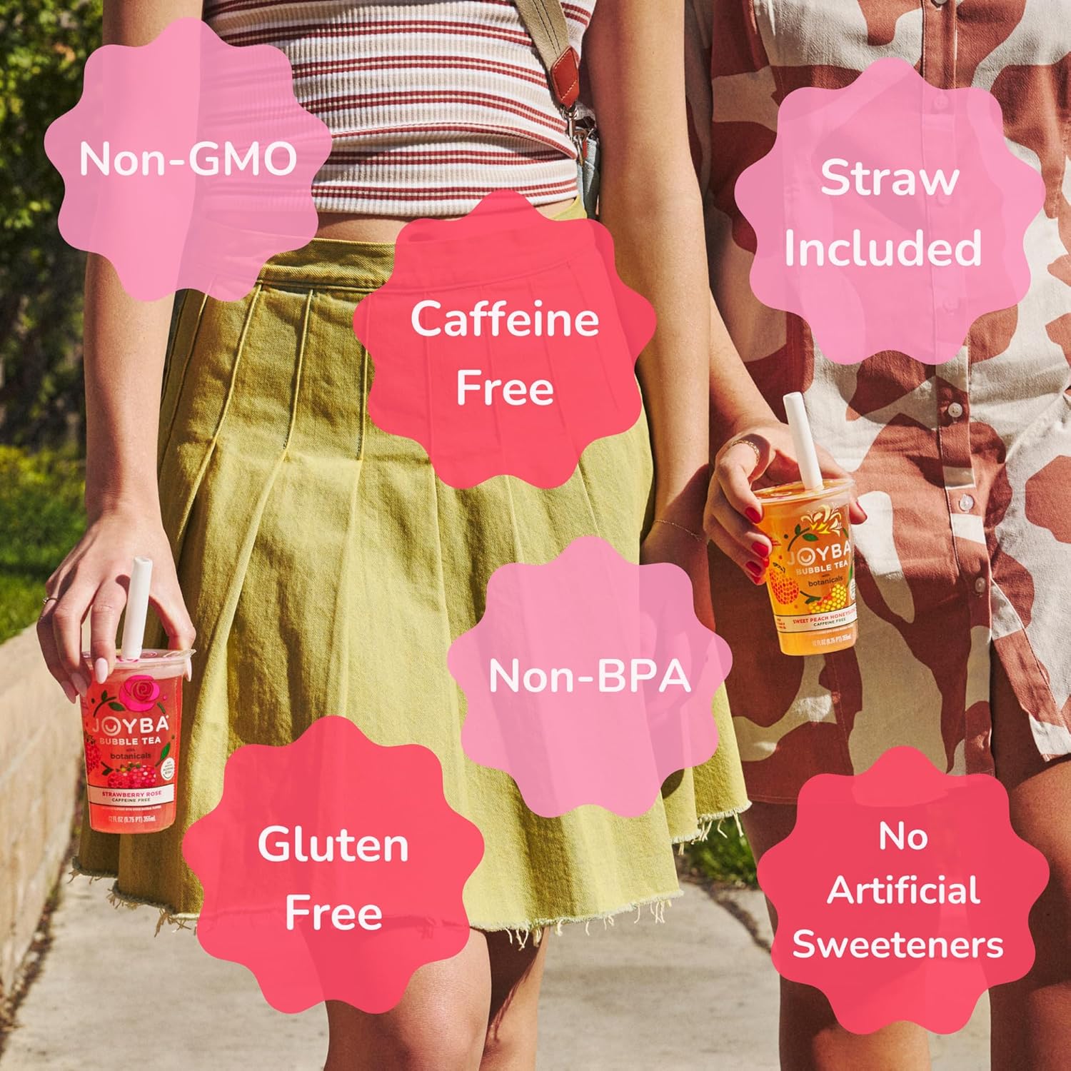 - Joyba Botanicals Sweet Peach Honeysuckle Bubble Tea Pack of 4 cups makes it easy to enjoy real brewed tea infused with vibrant fruit flavor on the go.