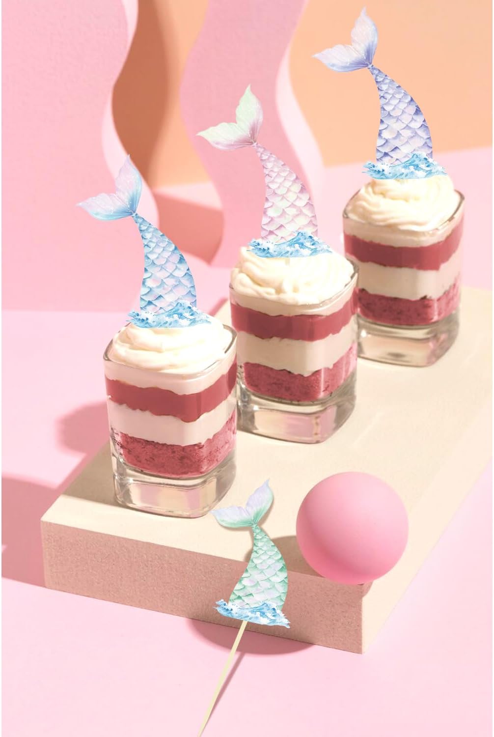 24 Pieces Mermaid Tail Cupcake Toppers Under the Sea Cake Decorations Picks for Mermaid theme Birthday Party Decoration Baby Shower Supplies (Mermaid Tail)