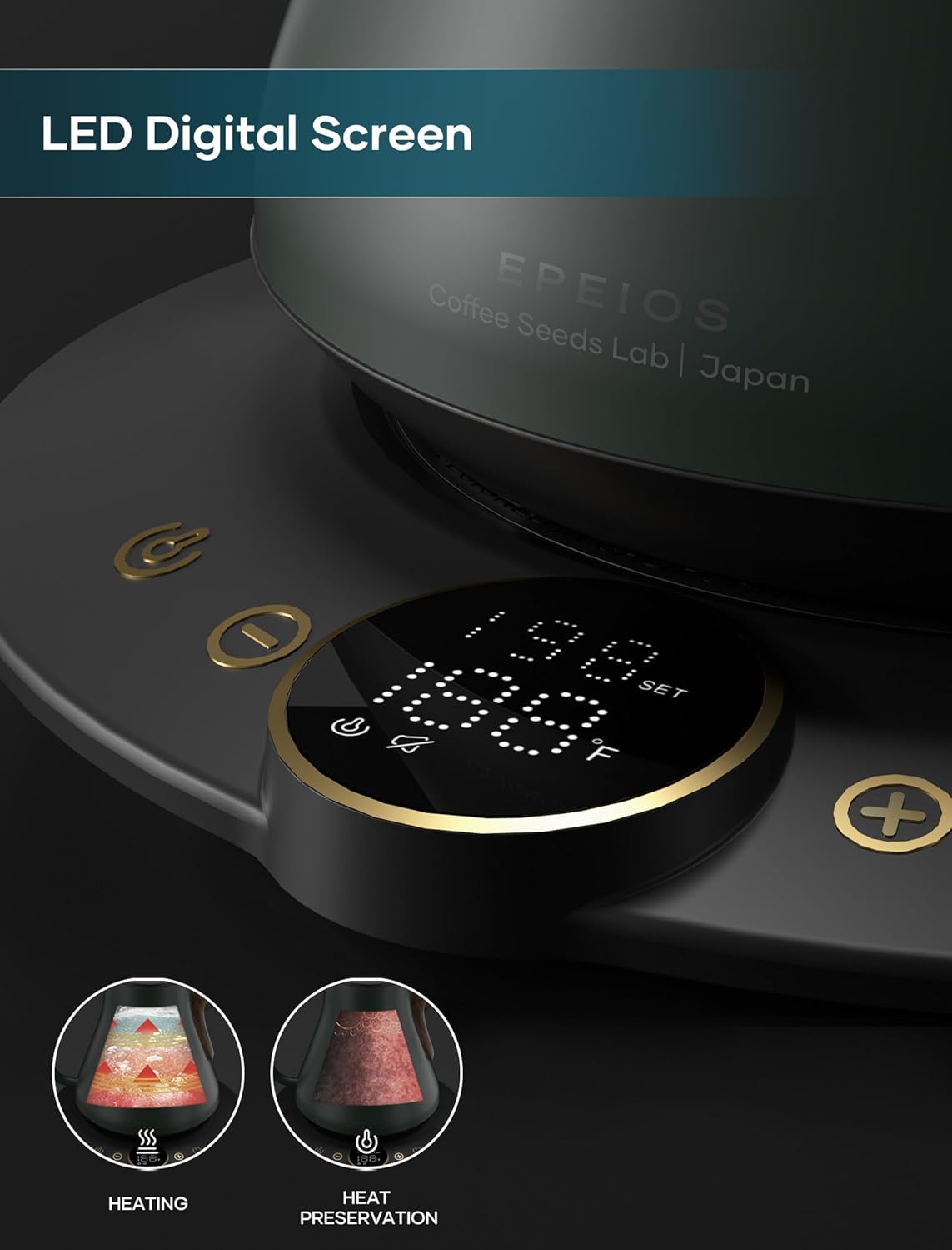 Electric Kettles, INTASTING Gooseneck Electric Kettle, ±1℉ Temperature Control, Stainless Steel Inner, Quick Heating, for Pour Over Coffee, Brew Tea, Boil Hot Water, 0.9L (Forest Green)
