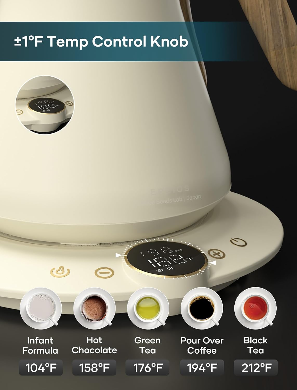 - ±1℉ Precise Temperature Control - Enjoy perfectly heated water every time. The smart base automatically adjusts power, keeping the temperature within ±1℉ of your target.