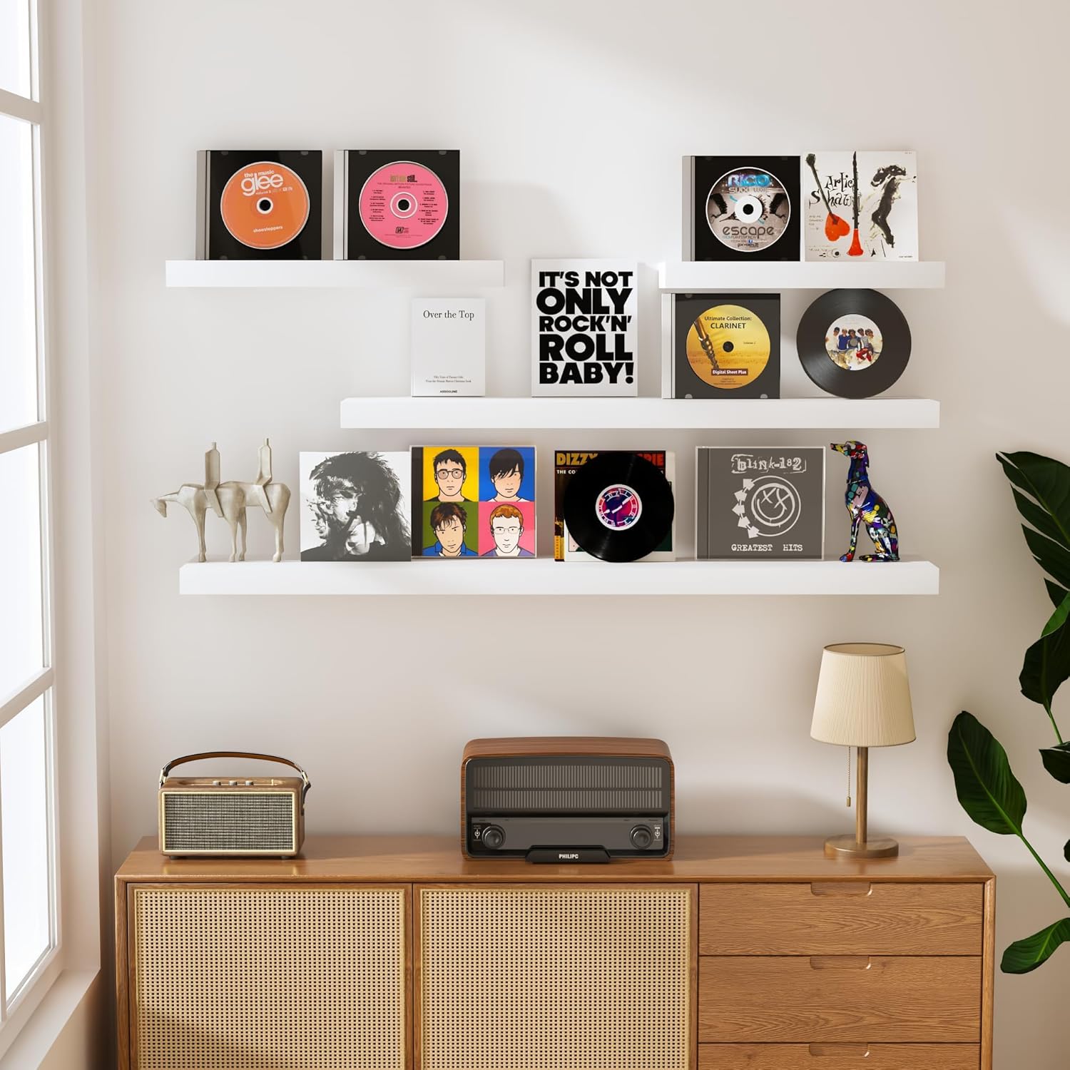 Vivelove Wooden Floating Shelves for Wall 48” x 8”x 1.4”, Solid Wood Shelf with Invisible Brackets, Deep Wall Shelves for Bathroom, LivingRoom, Kitchen, Bedroom, Modern Home Decor, Set of 1 - White