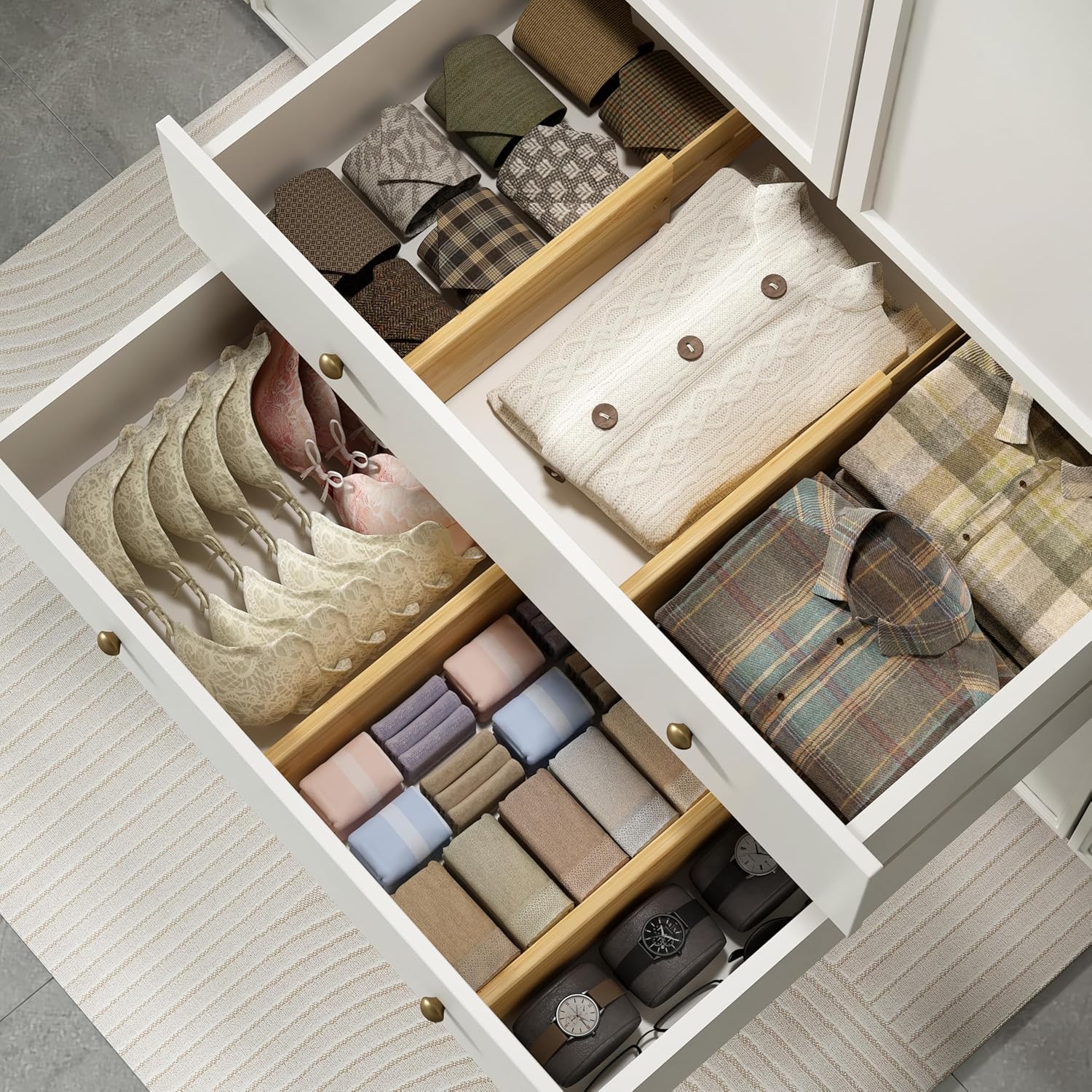 - Premium Bamboo Material: These bamboo drawer dividers are made of high quality bamboo material, natural color, tough texture, smooth surface, well made and long-lasting; Simply wipe it with a damp cloth