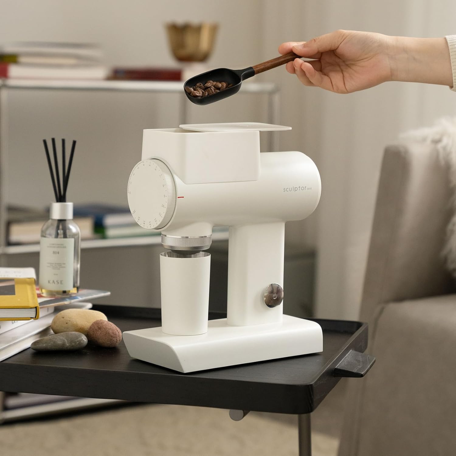 - [ Magnetic Powder Barrel Design ]The powder barrel of the Sculptor 064S coffee bean grinder adopts a magnetic design. Magnetic suction returns to the position just below the powder outlet, smooth and accurate.