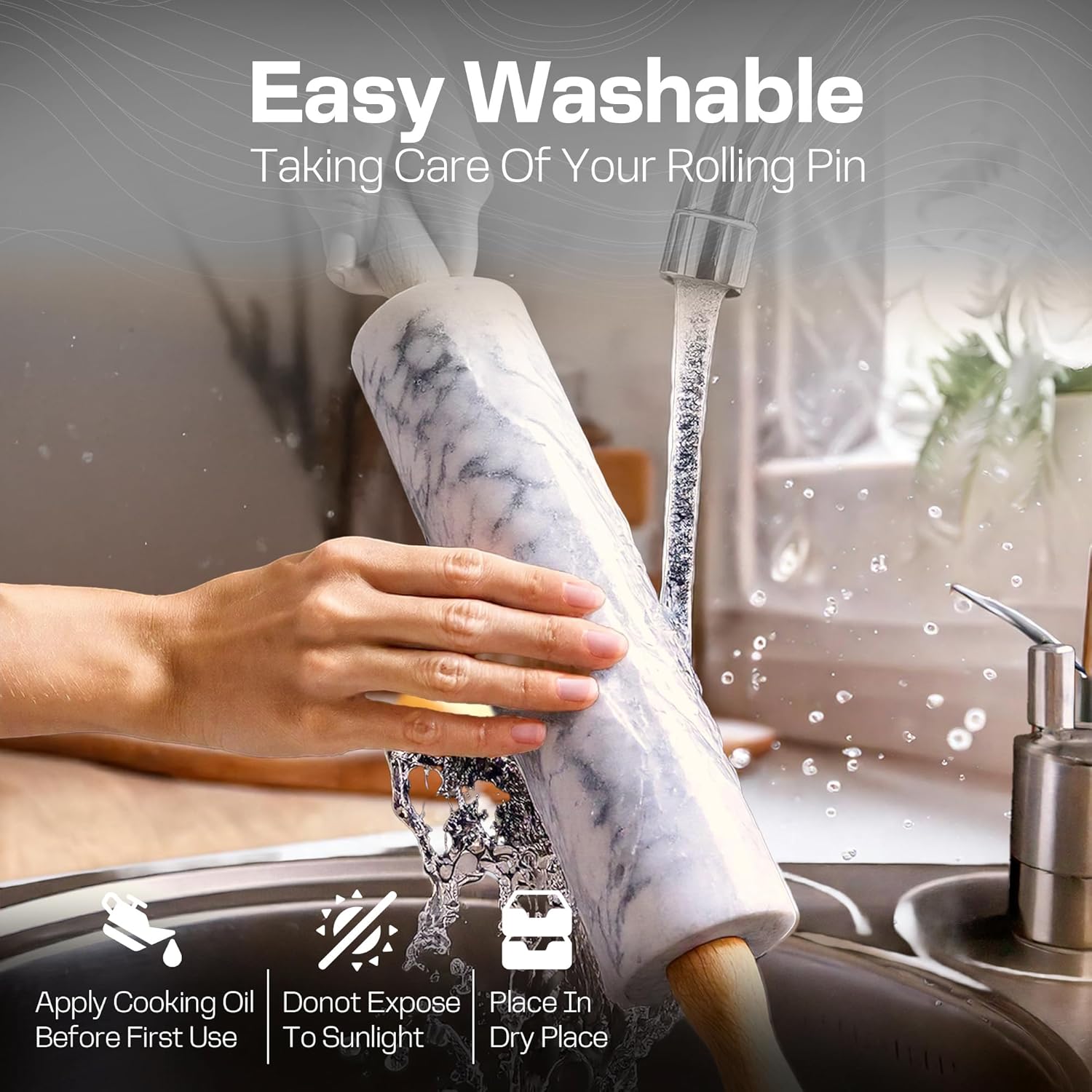 - WOODEN RESTING BASE – Keeps the rolling pin stable and easy to store.