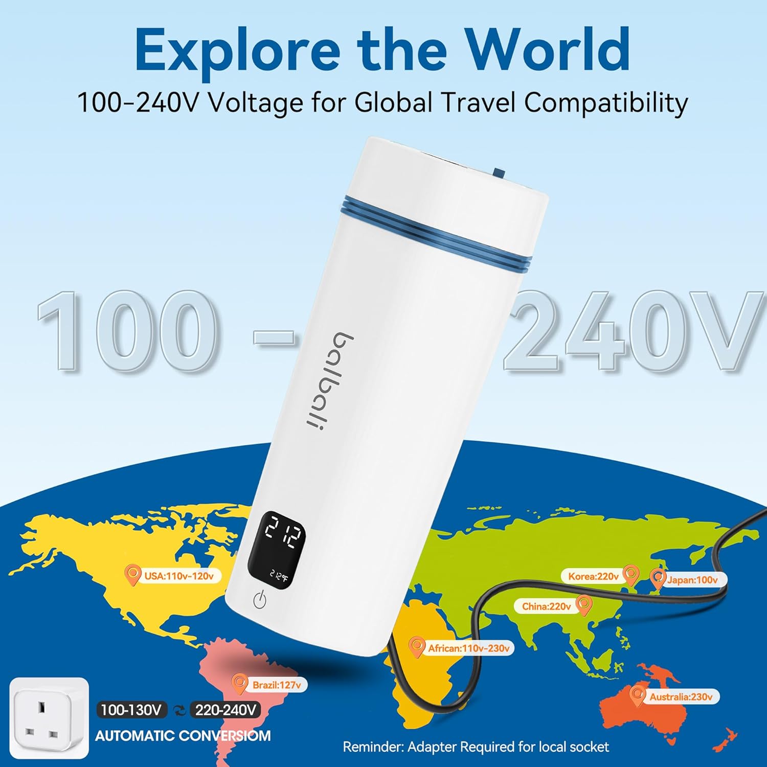 - Your Ultimate Travel Companion: H13 Travel electric kettle supports dual voltage (100-240V) for seamless domestic and international travels