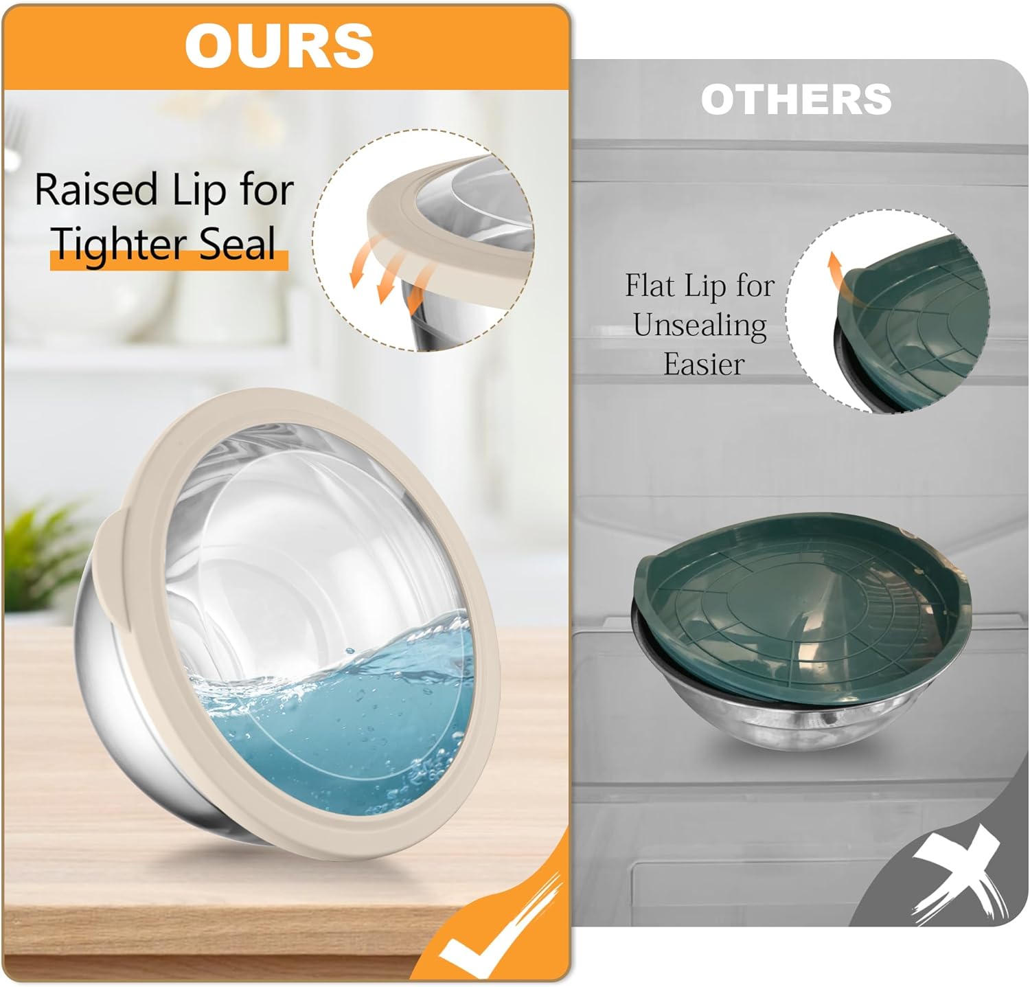 - NON-TOXIC & HEAVY DUTY: Our mixing bowls are made of pure stainless steel without any toxic coating or harmful substances and the airtight lids are constructed by food grade plastic and silicone, No chemical substances leaching when during food preparation, Healthy for everyday use, Sturdy stainless steel to avoid rust and deformation, For a longer service life