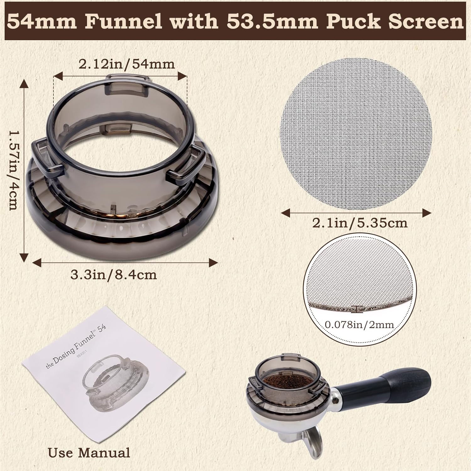 54mm Dosing Funnel with 53.5mm Puck Screen, Catcan Espresso Portafilter Funnel for Breville Series Barista