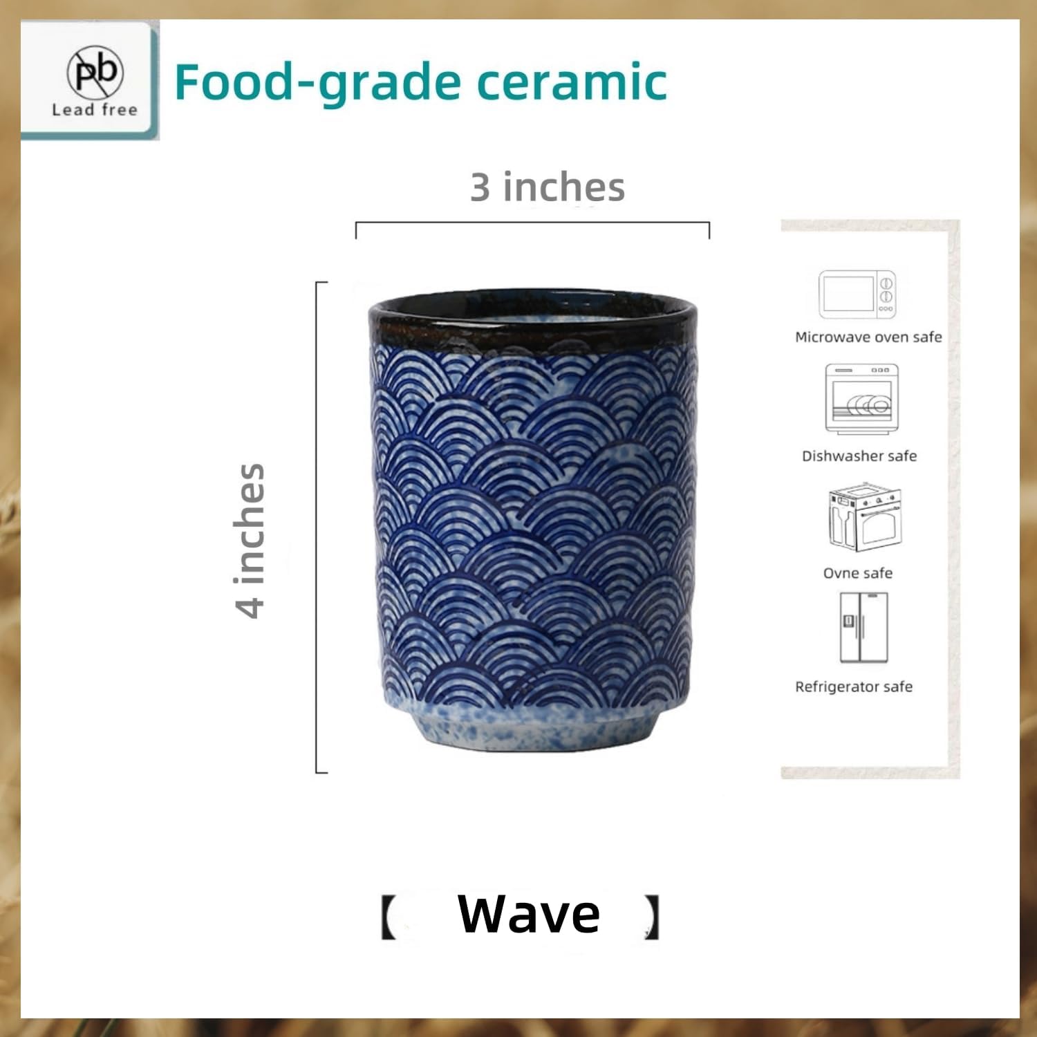 Stoneware Coffee Bar Utensil Holder Tea & Coffee Spoon & Stirrer Holder for Stir Stick Straw Teaspoon Holder Spoon Cup Small Utensil Jar (Blue Wave)
