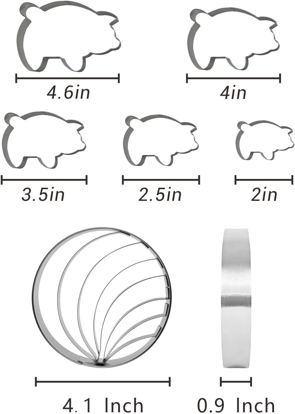 - Versatile 5Pc Pig Cookie Cutter Set: 4.6” 4.1” 3.5” 2.6” 2.1” size. Delight in the whimsical side of Mexican culture with our 5pc Pig Cookie Cutter Set. Available in five different sizes, these cutters are perfect for creating charming pig-shaped cookies, a hit at any gathering, and a favorite among children and adults alike.
